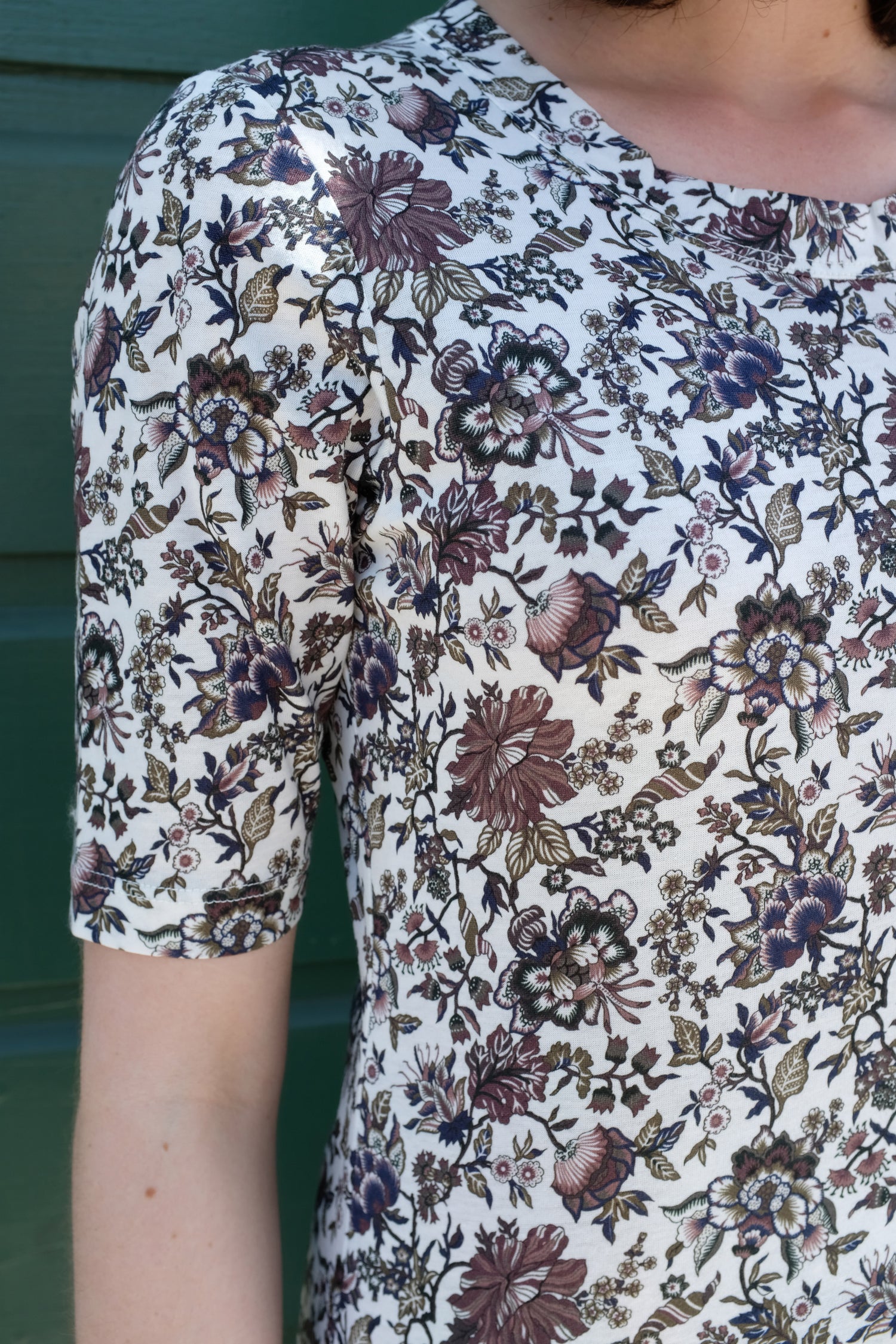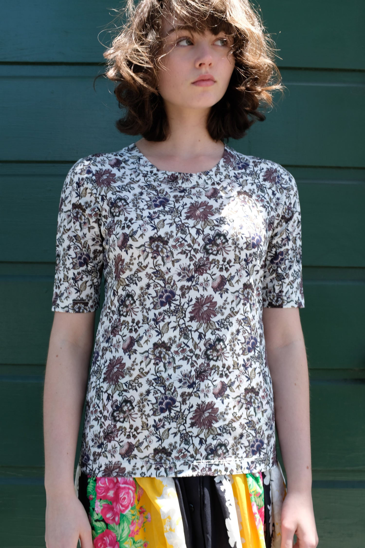 Round neck tee in cotton jersey. Half length sleeves, straight hem. Liberty’s iconic floral textiles have been a staple since 1875. The Lawn pattern has been their most beloved and best-selling base, versatile enough to be worn throughout the year. 100% Cotton