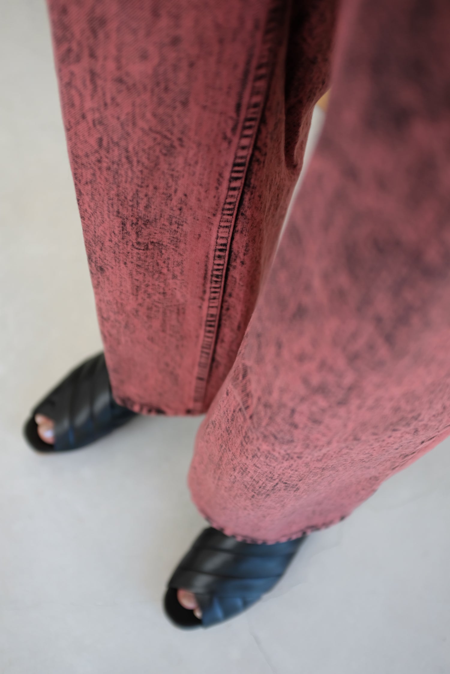 Wide leg, ankle length pant. Sits high on the waist and has a slight crop at the ankles. Zipper fly, button closure. Slash pockets at the hips. Soft acid wash Japanese denim. 100% Cotton.