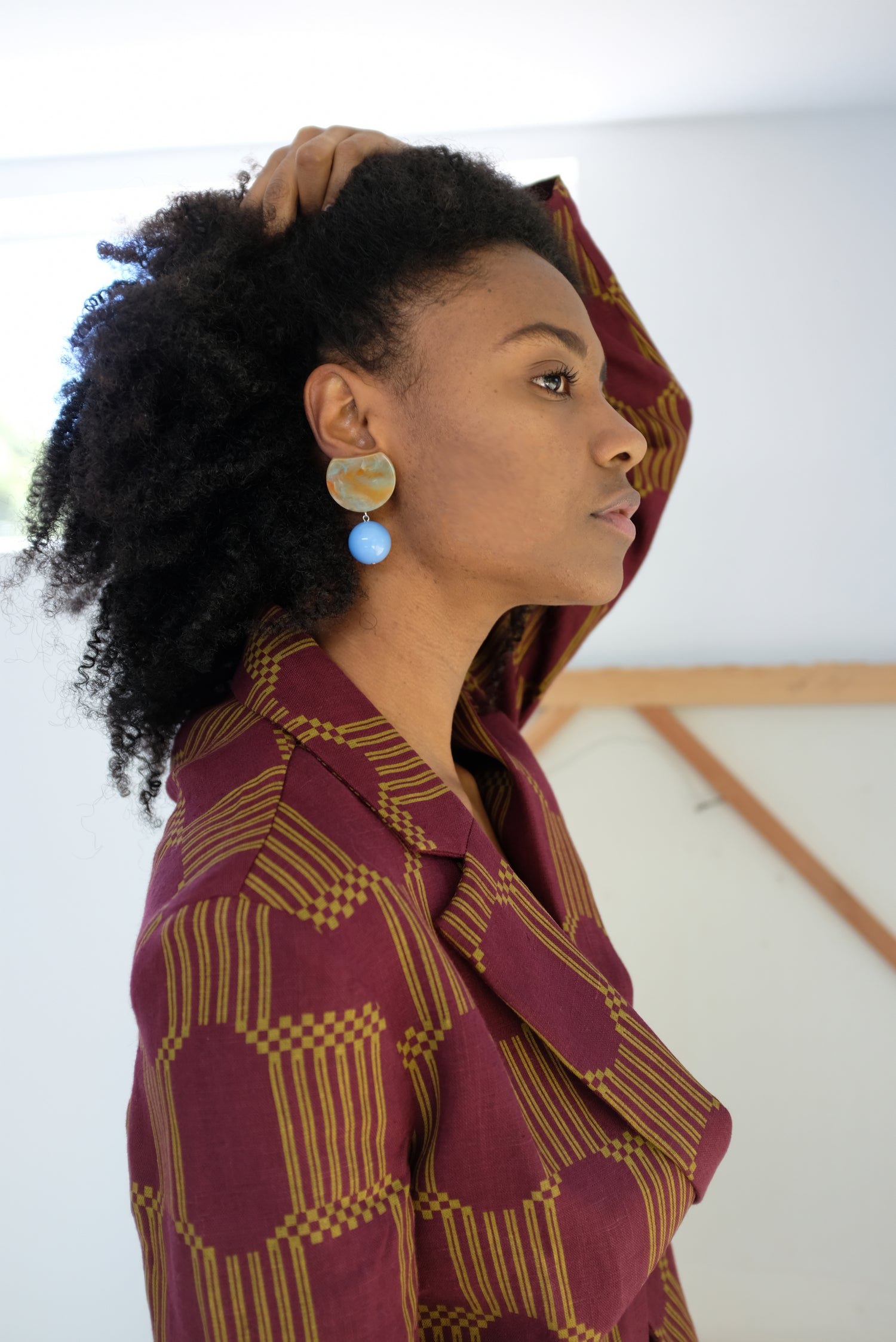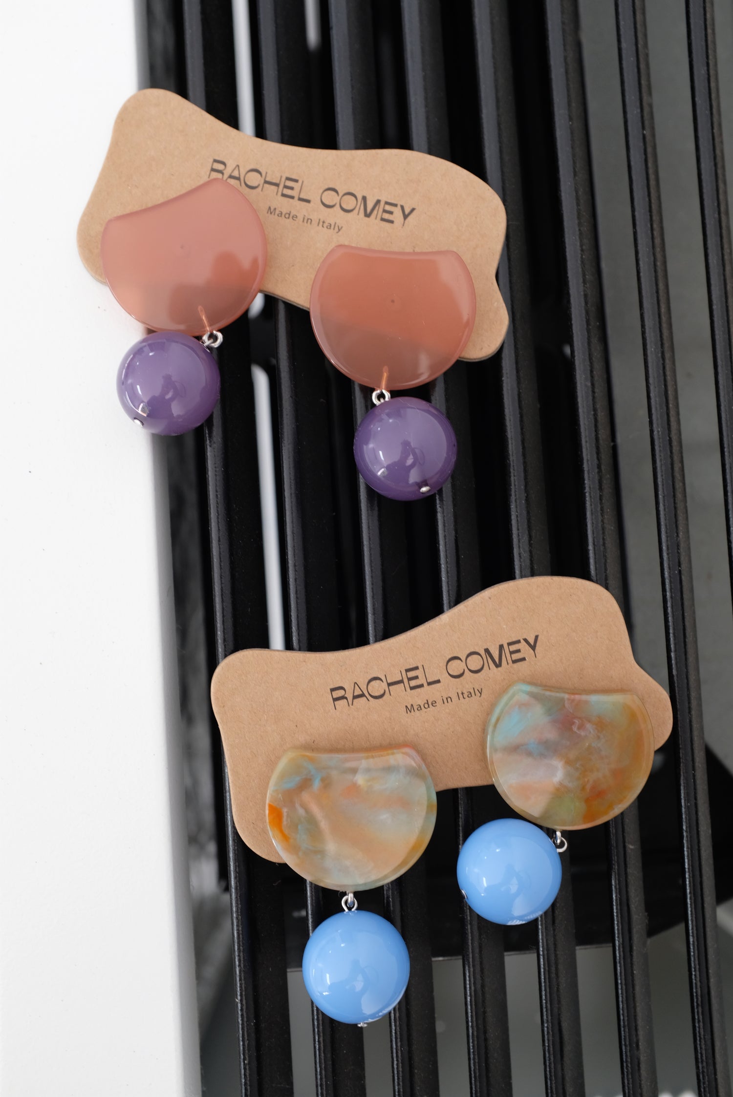 Drop acrylic earrings. Stud fastening for pierced ears. Plated steel post. Aprox 2"
