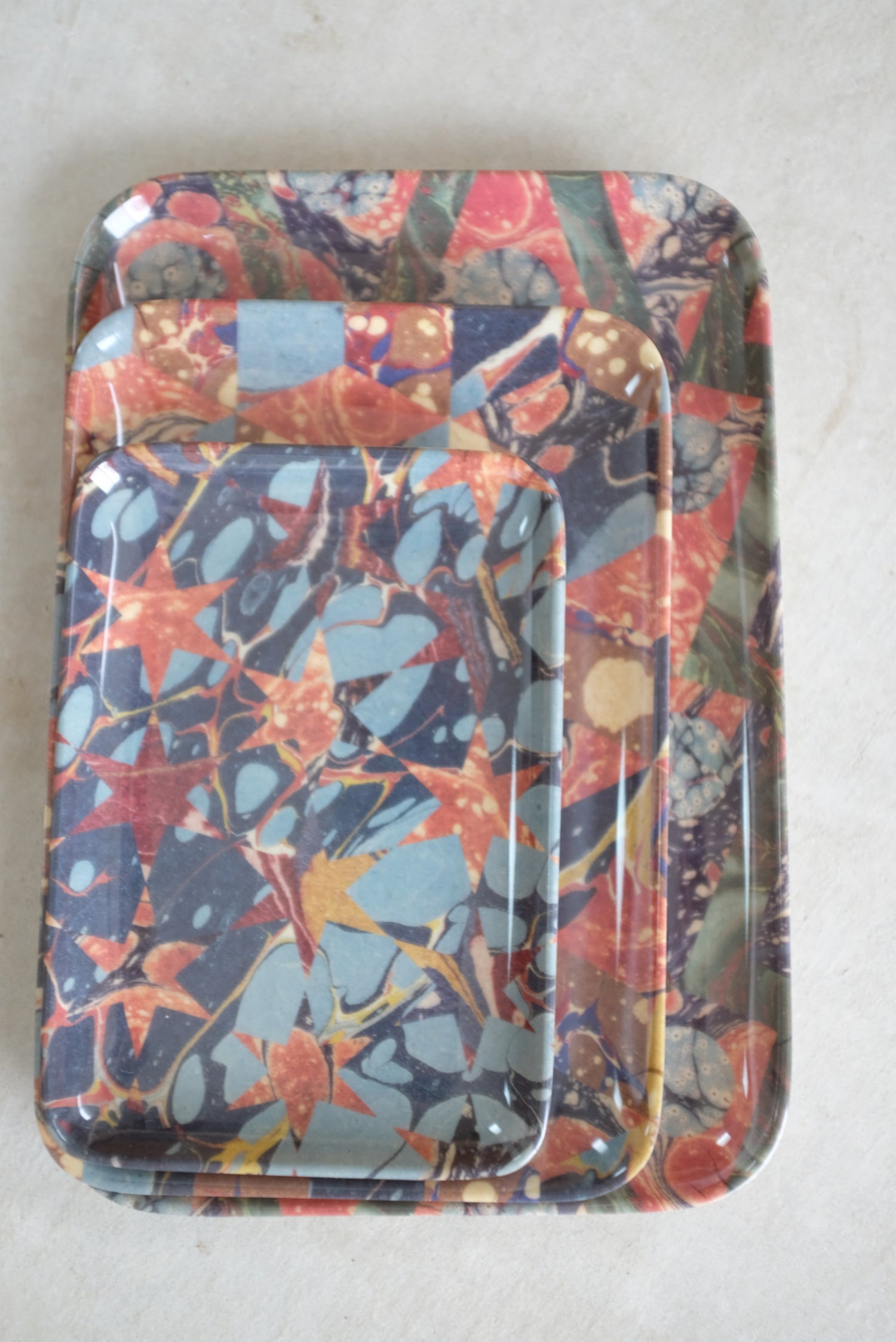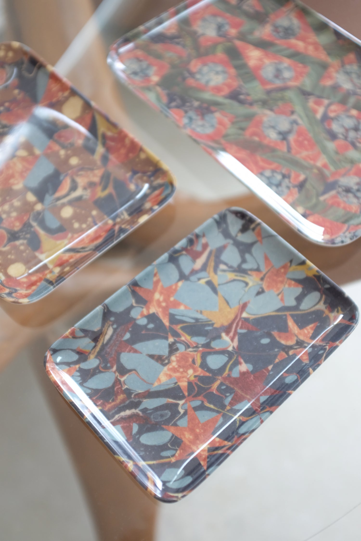 Patterns after traditional marbled end papers used in old books. Papers commonly referred to as “Turkish” marbling or “Ebru” in modern Turkish.
