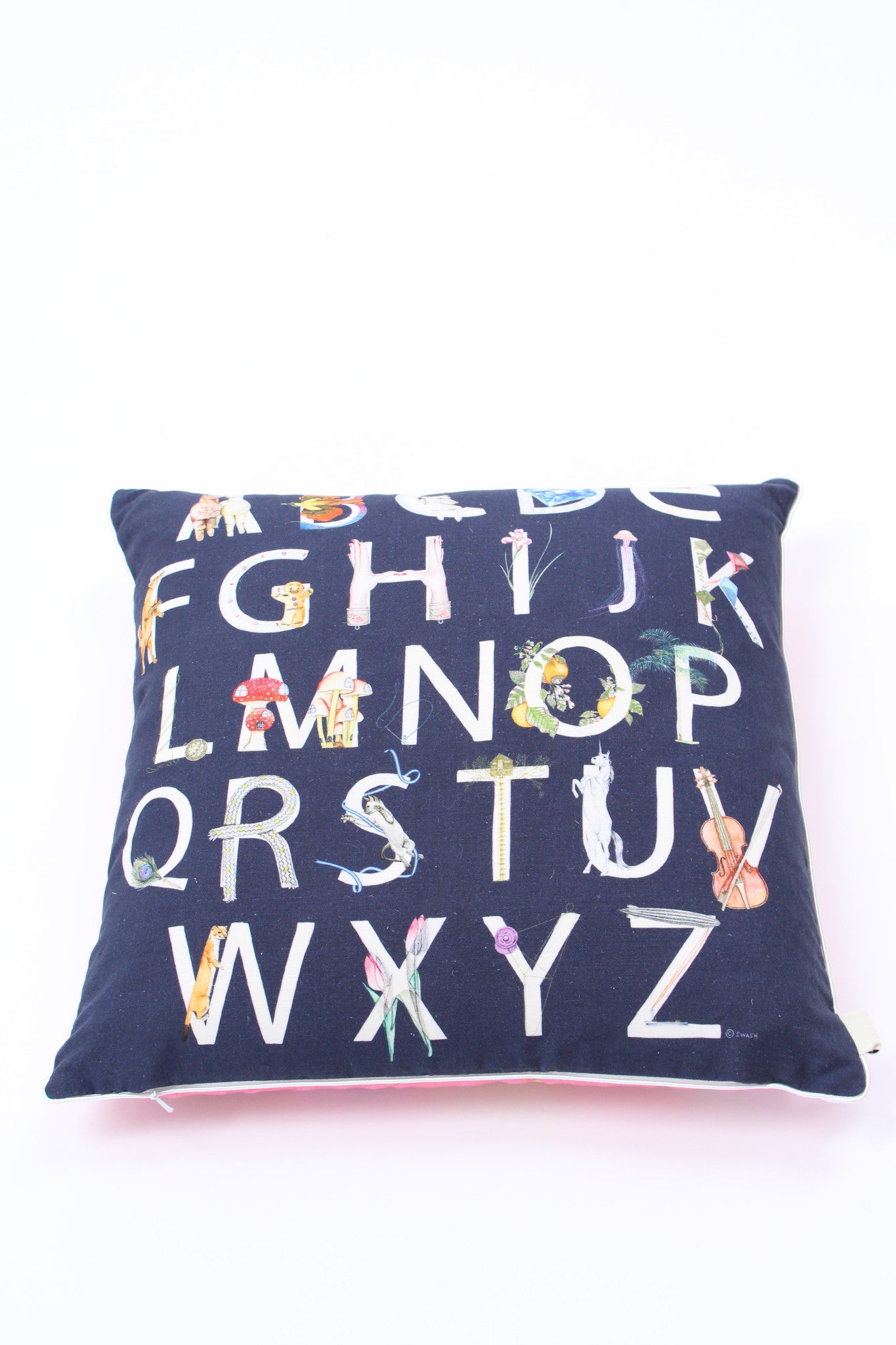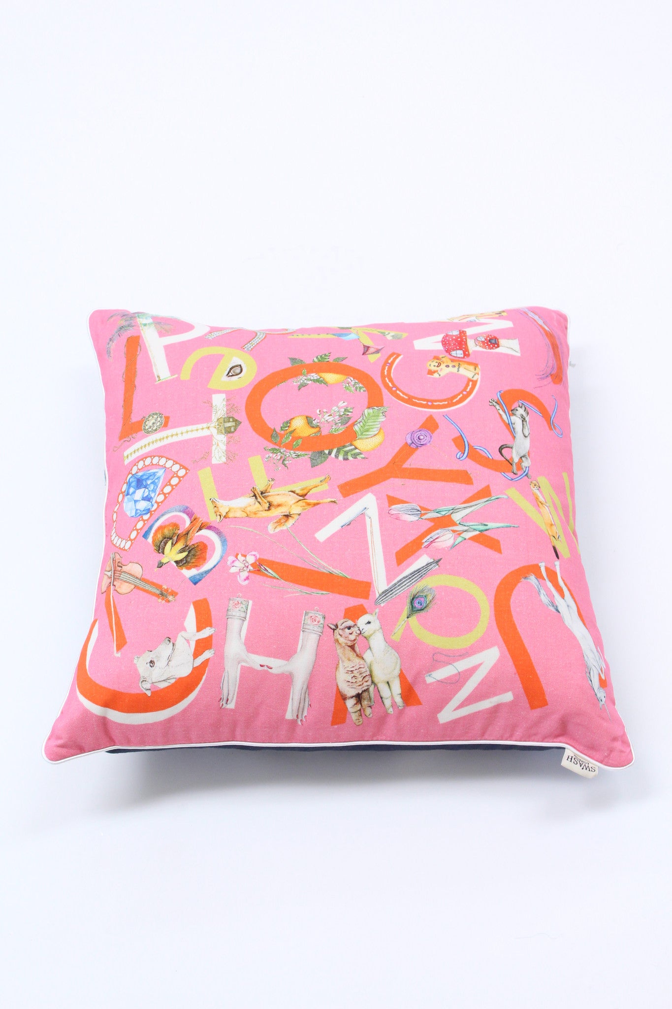 Luxurious down filled square pillow. Linen silk with silk piping edge all around, zipper, down insert included. One side is pink and the other navy. Collectible. 15" x 15" -double sided with art on both sides.