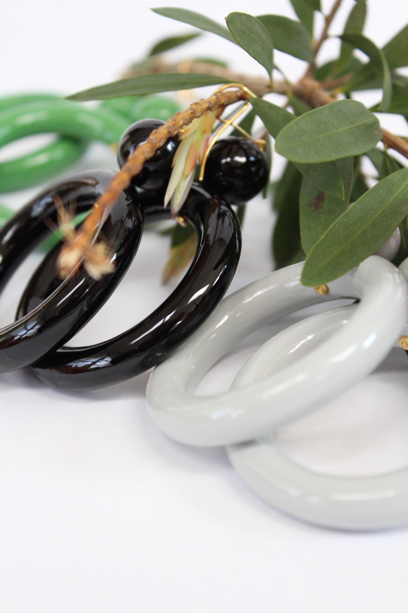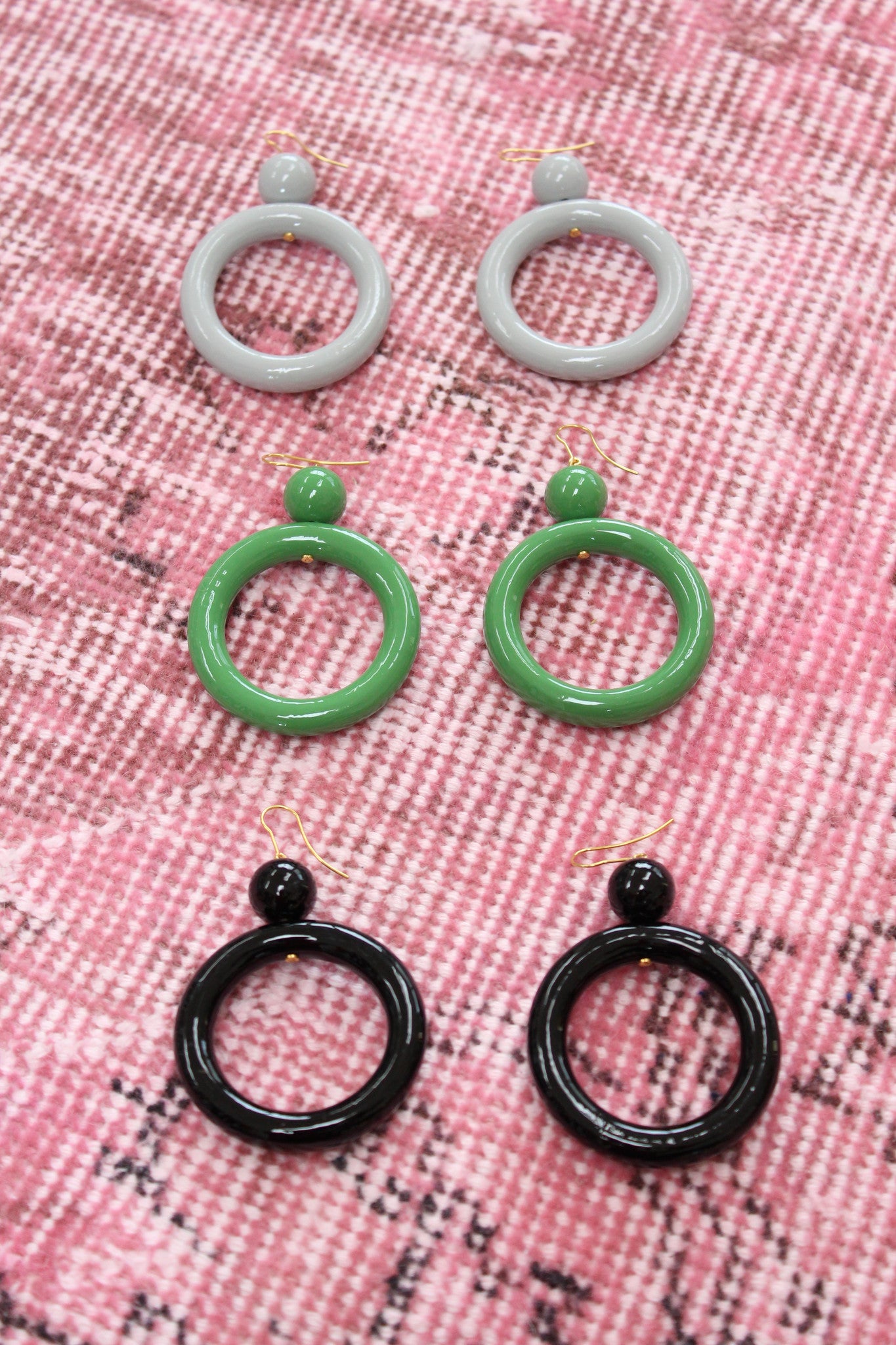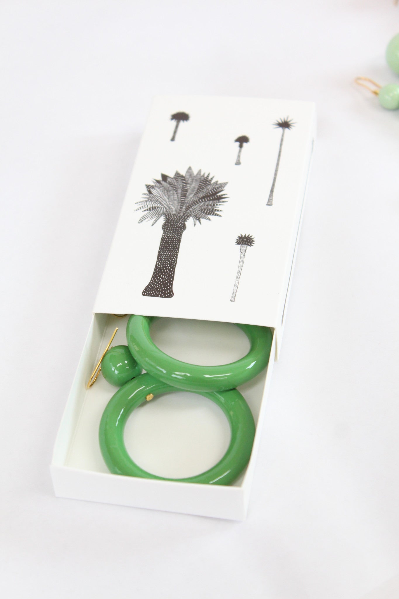Light as air, hand lacquered in Spain, wooden hoops, inspired by the typical flamenco earring of south Spain. Golden brass hook, nickel free. Aprox 2” x 2”