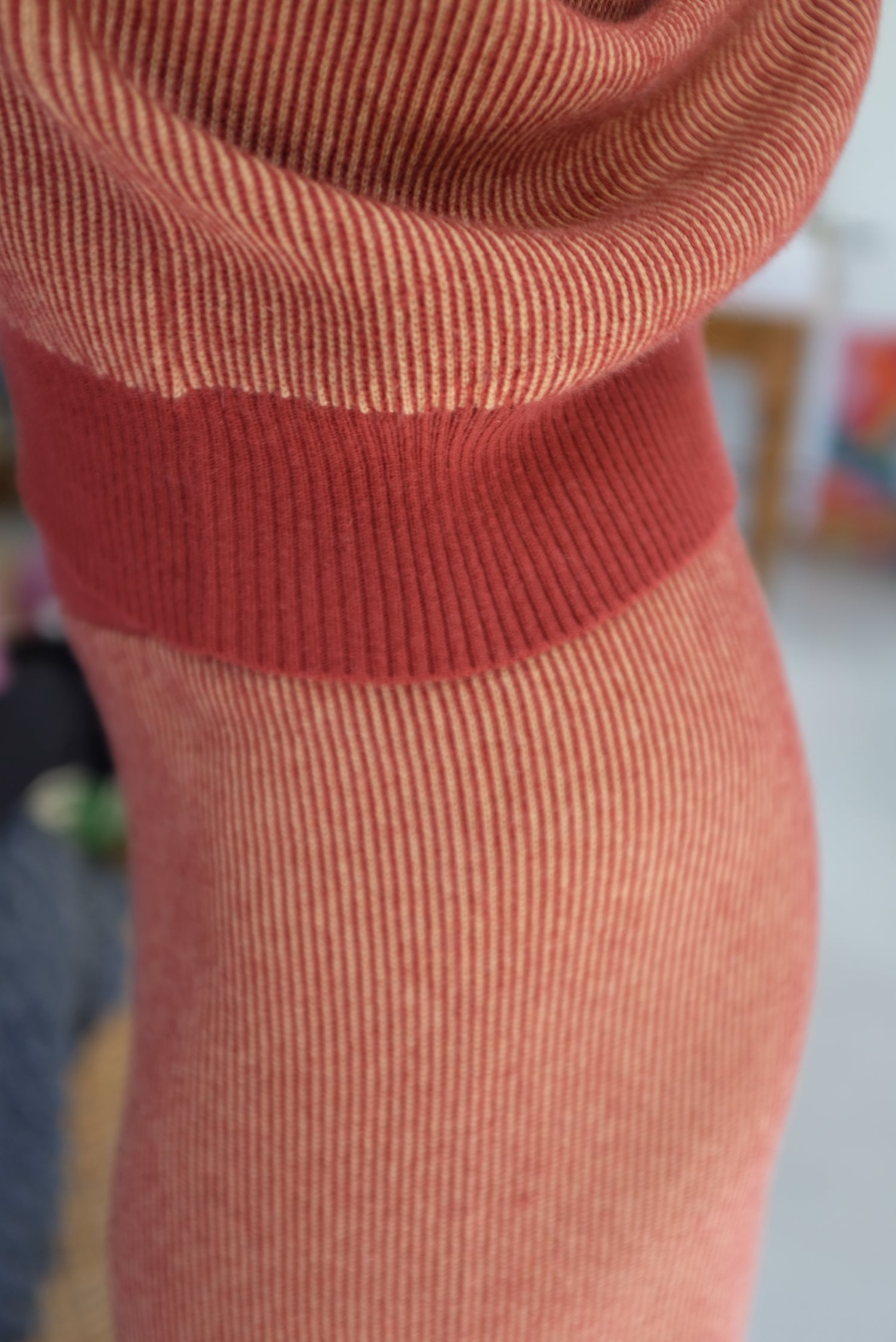 100% Cashmere two-tone ribbed culottes, luxuriously thick cashmere. Cropped, high waisted, gentle elastic waist, wide leg pants. Super comfy! Exclusive to Beklina. The same cut and fit as our best selling cotton culottes.