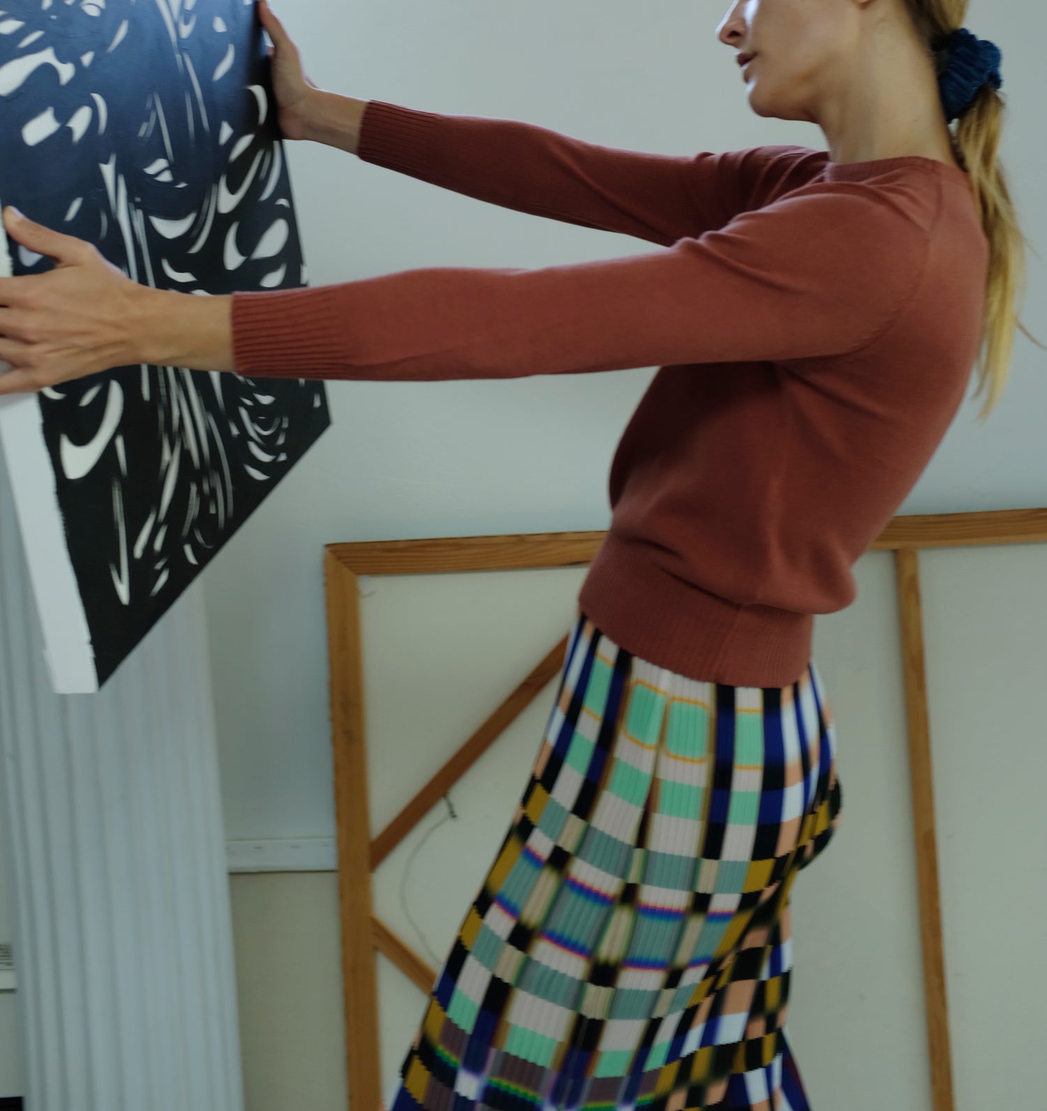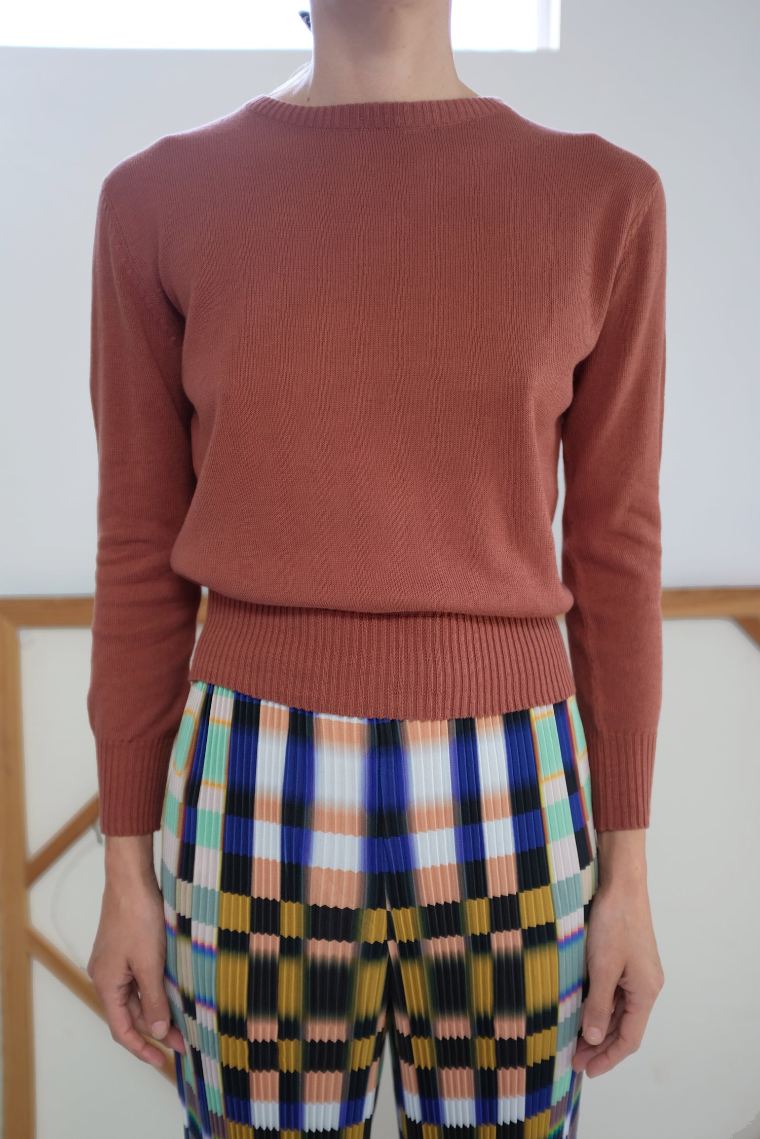 Crewneck cotton knit top. Pairs perfectly with high waisted pants. Light weight, not sheer, wear as a second skin, or on its own. 3" ribbing at cuffs and waist. 100% Cotton. Exclusive to Beklina.