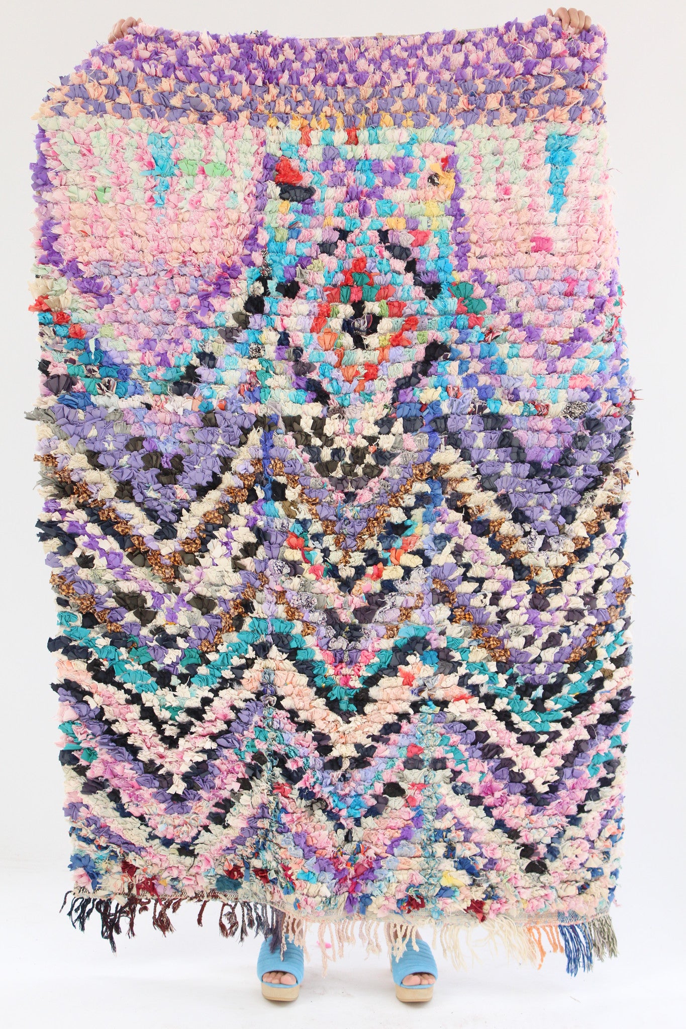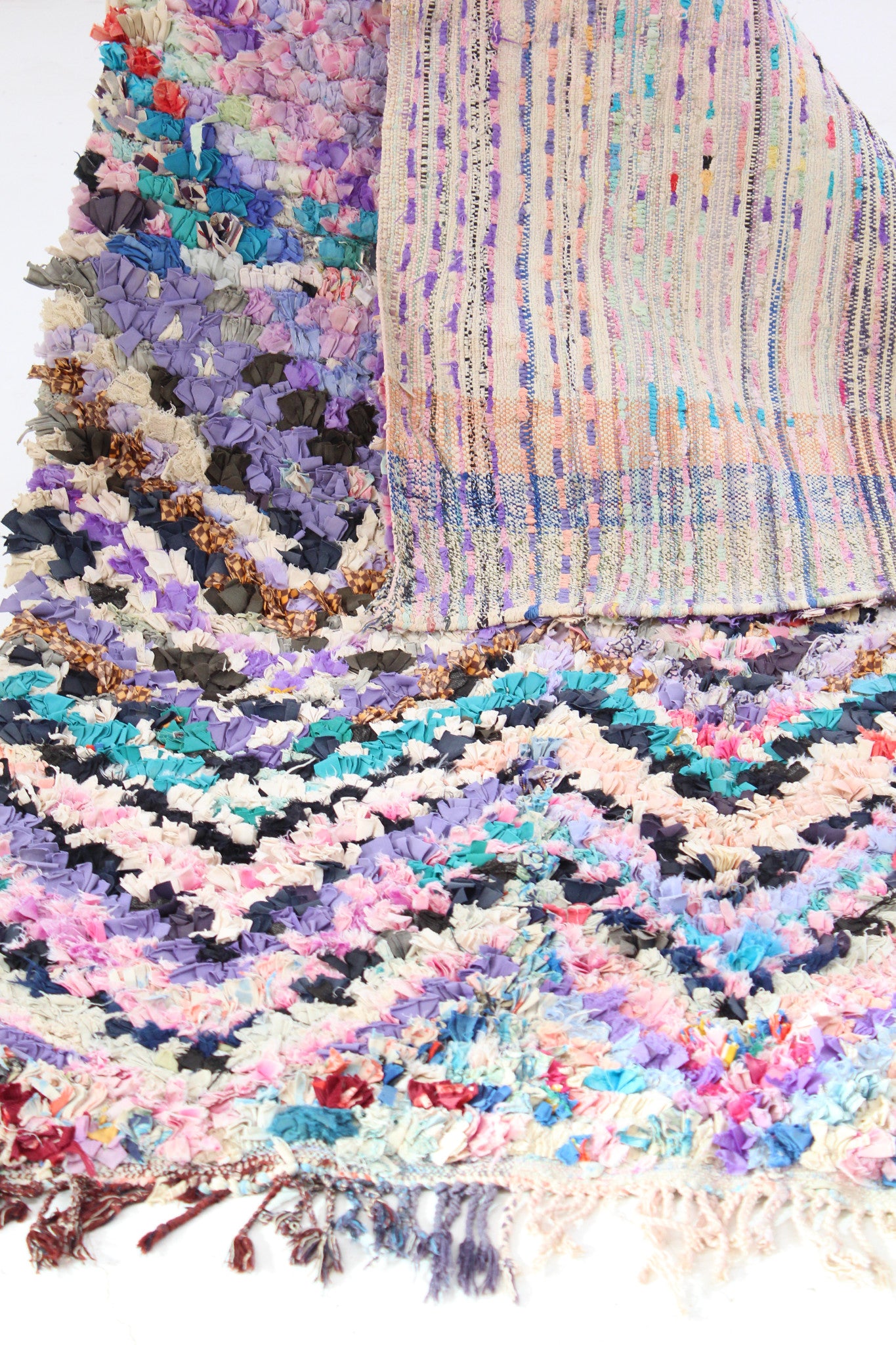 Morocco's Berber craft Boucherouite rugs. Can also be hung on walls. Authentic vintage rugs that make a colorful and warm statement. Made from sustainable materials by local artisans – including cotton, nylon and wool. Each is one of a kind.
