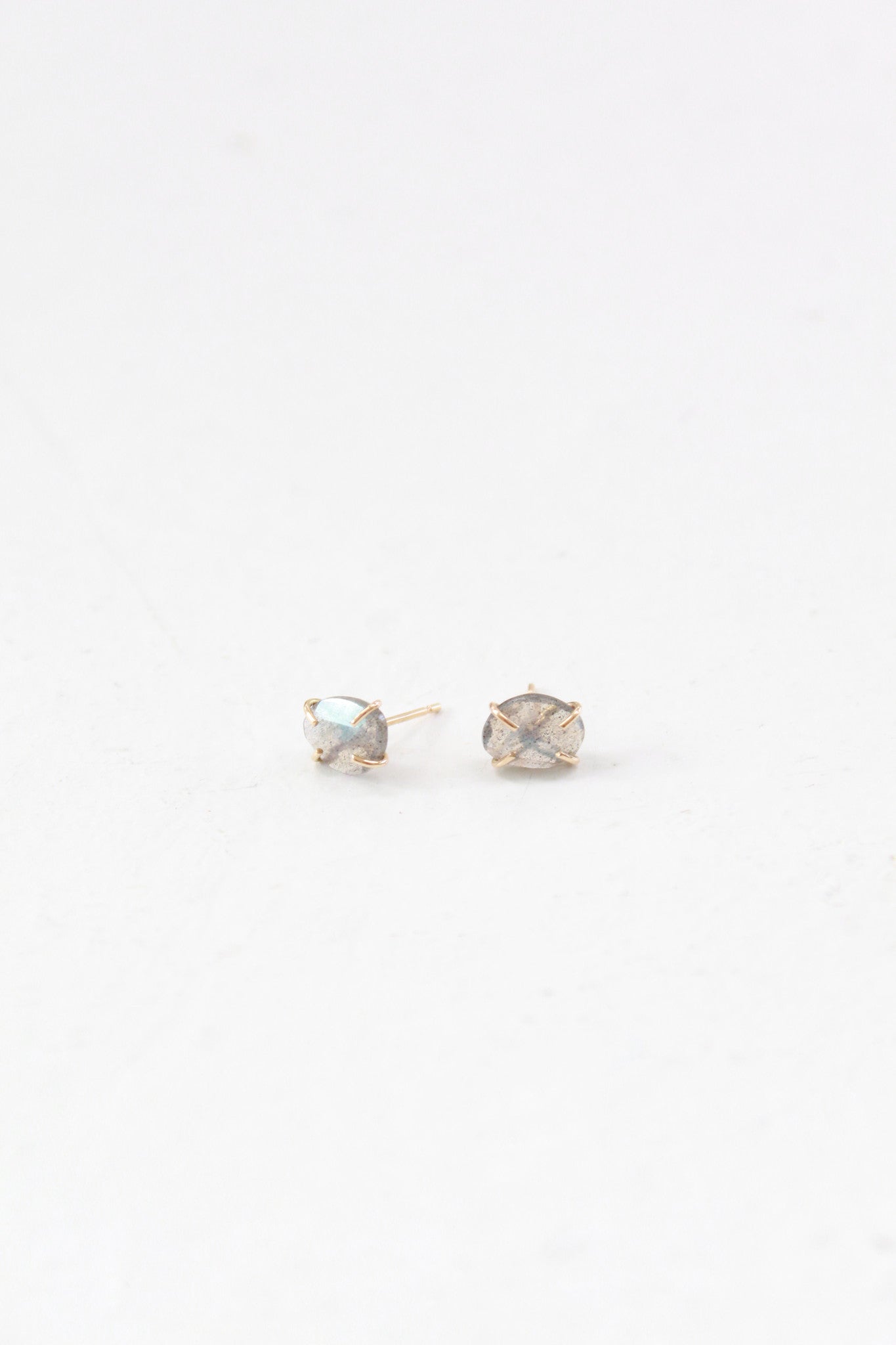 Recycled 14 Karat Gold. Freeform Labradorite Cabochon, 7x7.5mm