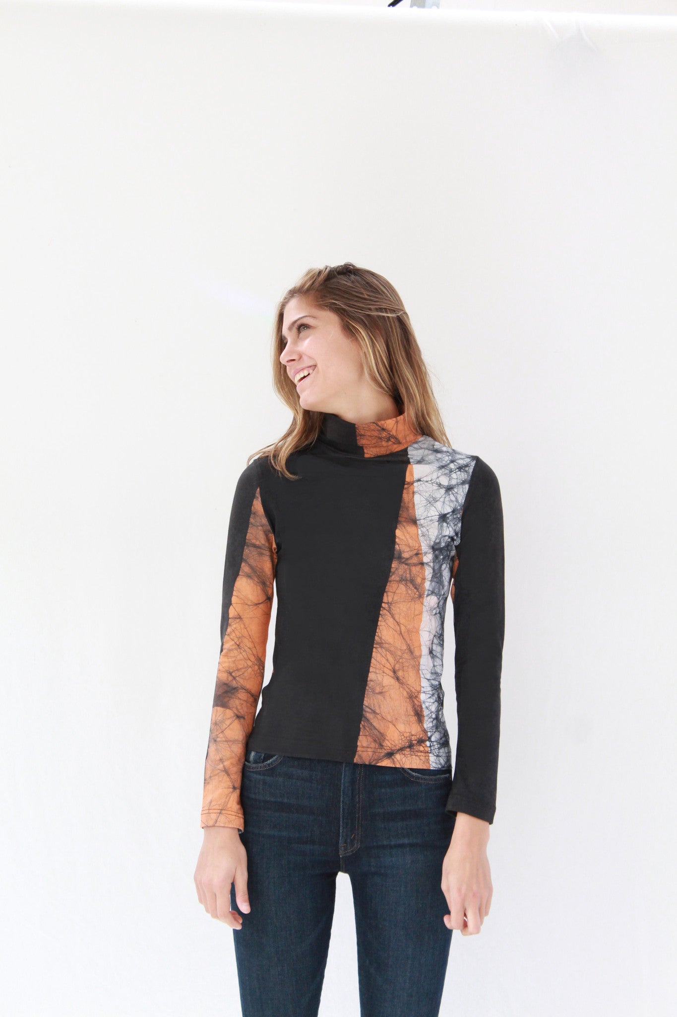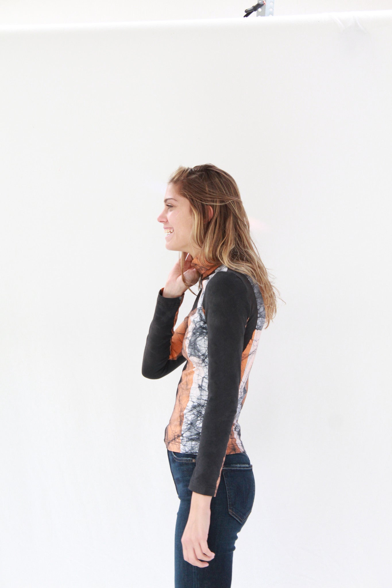 100% cotton, snug stretchy fit. Hand block-printed in coral, black and white hues. Runs true to size. Addy is wearing a size small and she is 5 10".