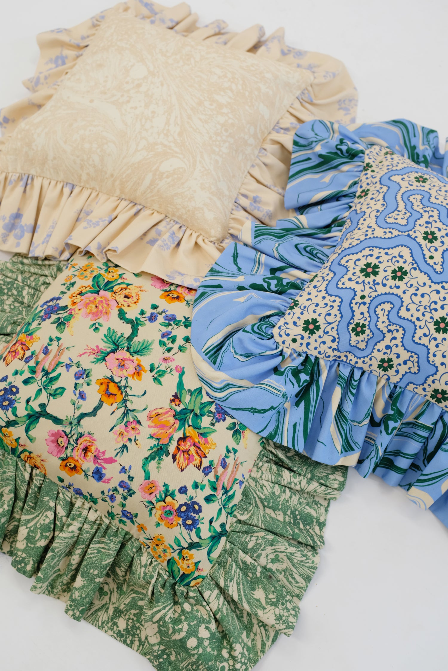Made in the UK. 100% Cotton. Hidden zipper. Removable cover and machine washable.