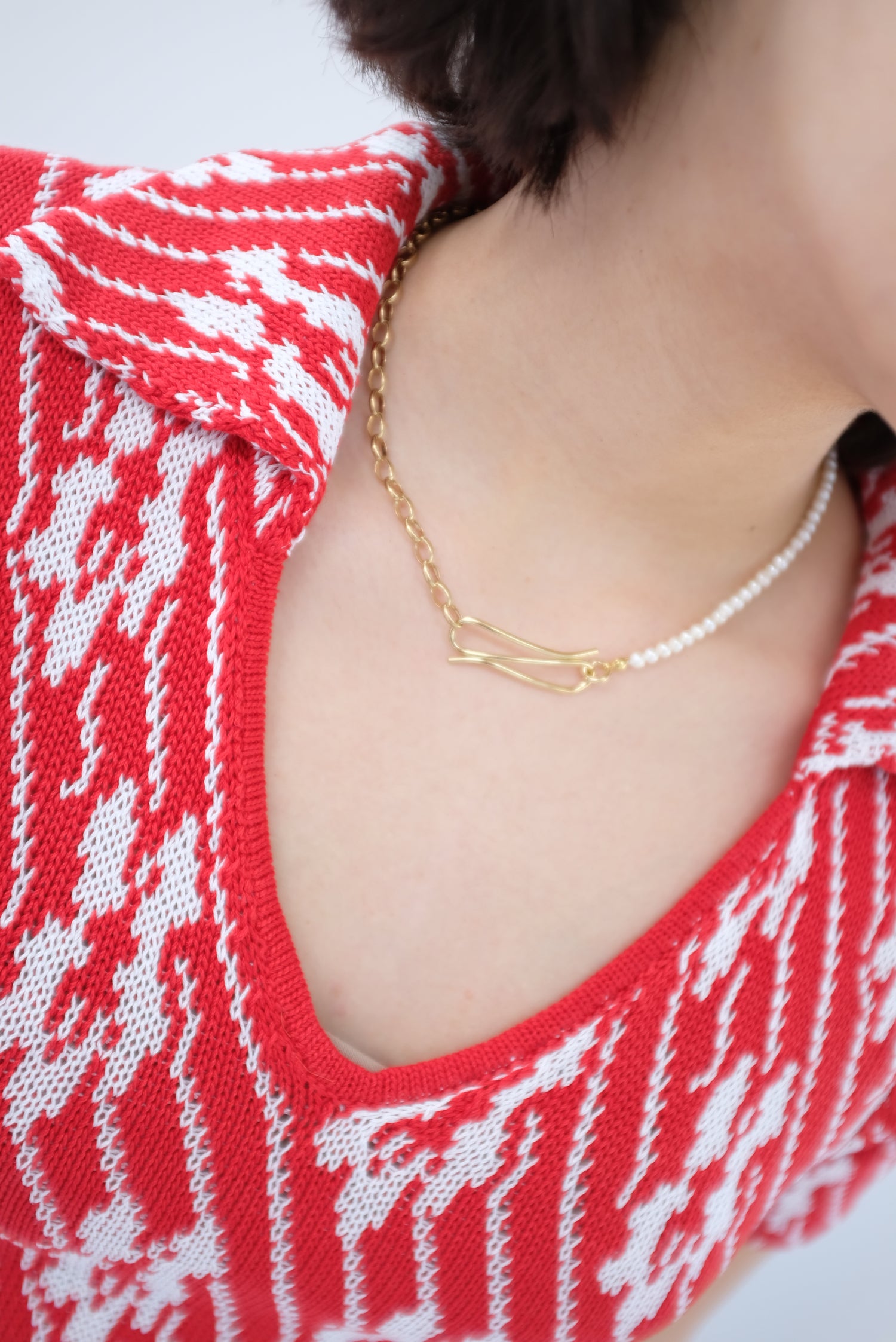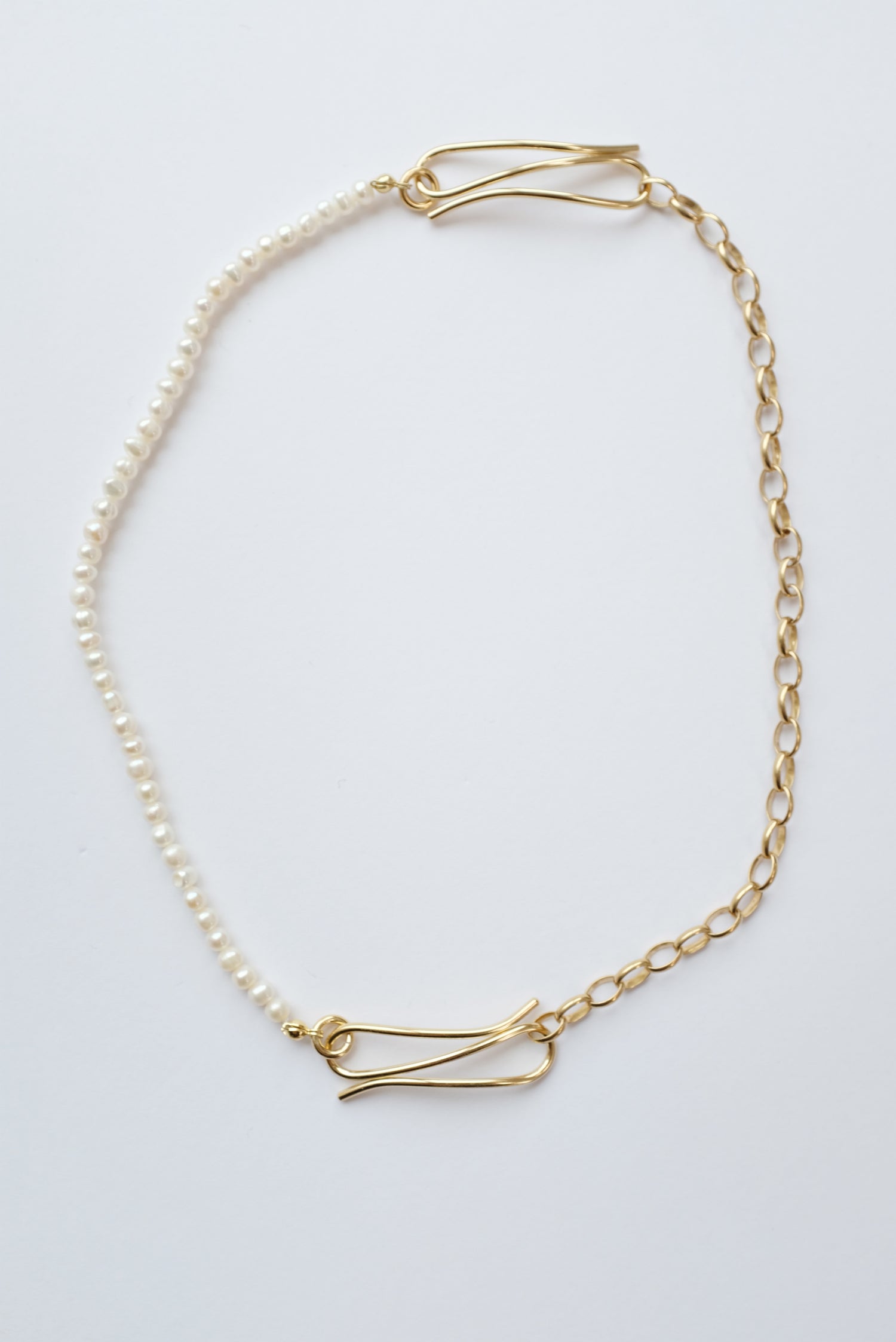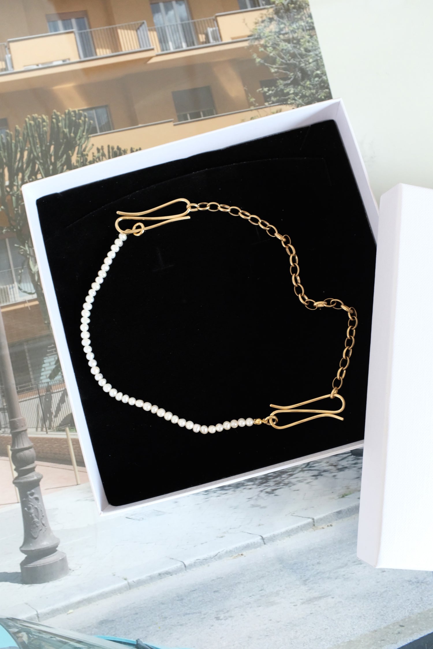 Gold plated silver chain and fresh water pearls necklace. Aprox length is 17".