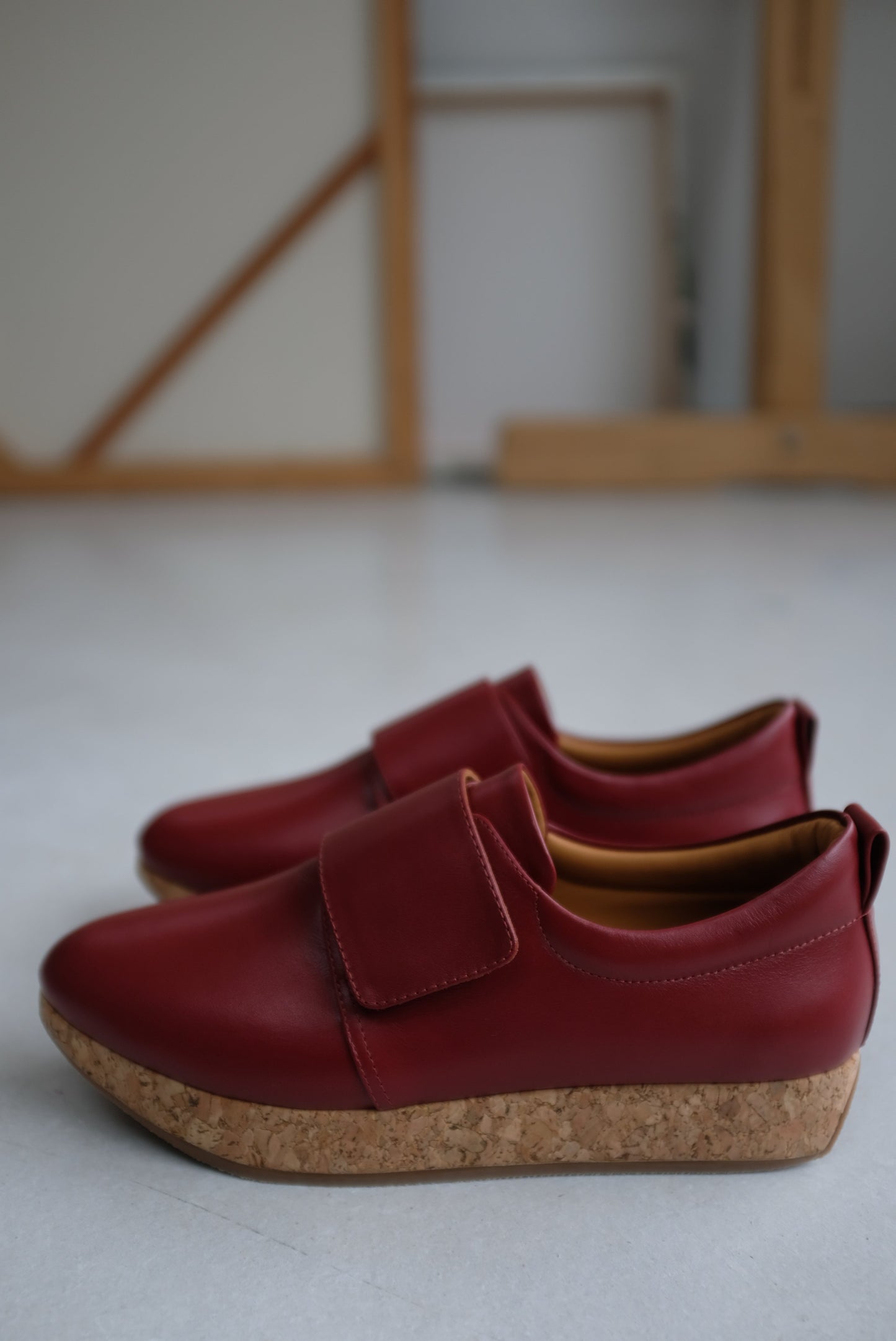 100% Leather upper with cork 1 1/4" platform heel, velcro strap closure. Super comfy walking shoe. Running true to size.