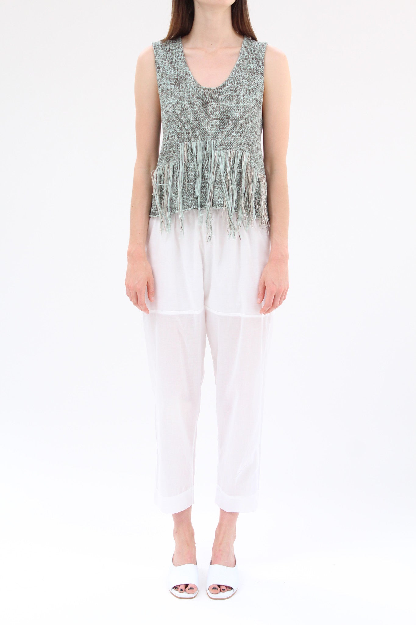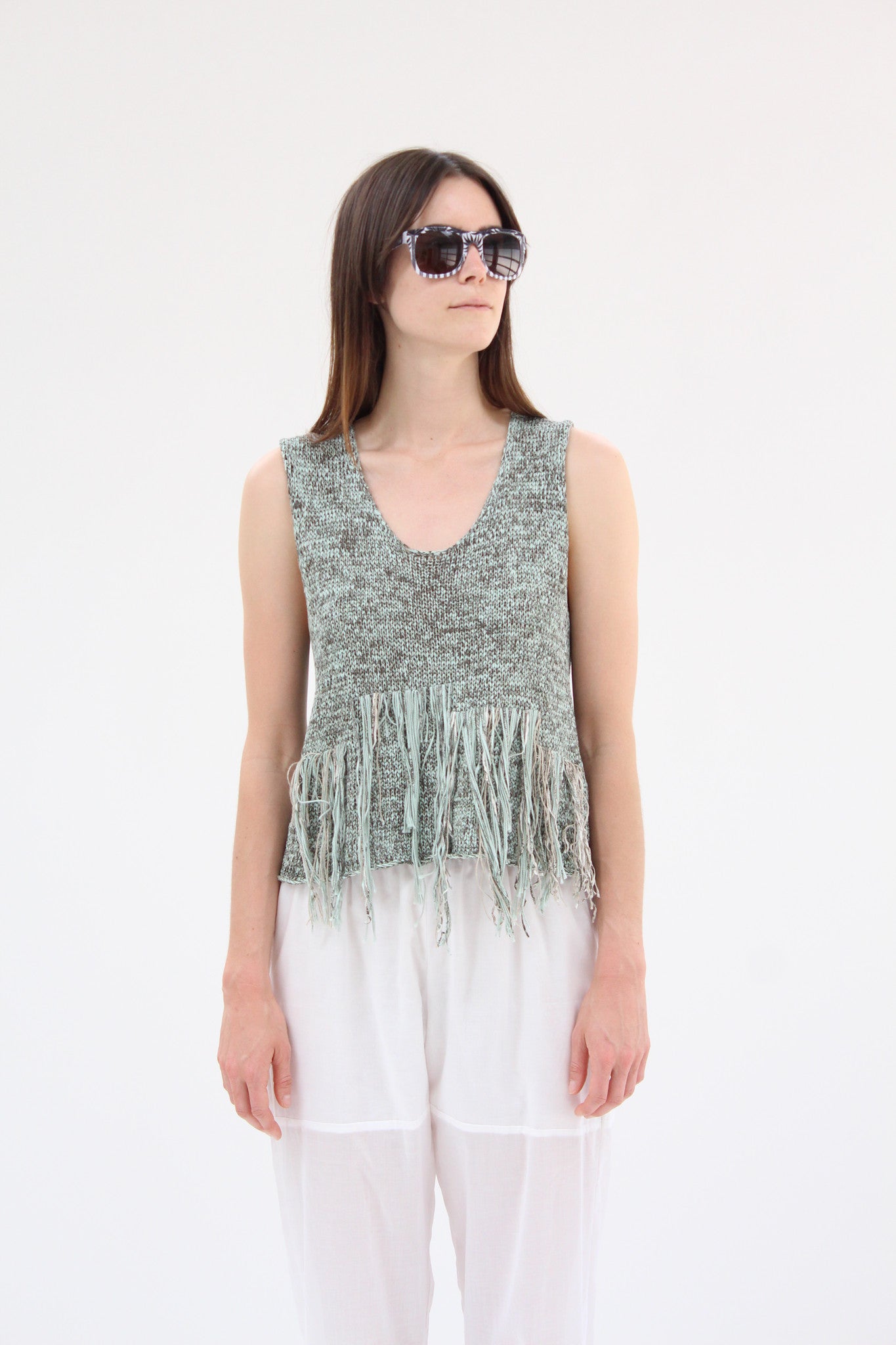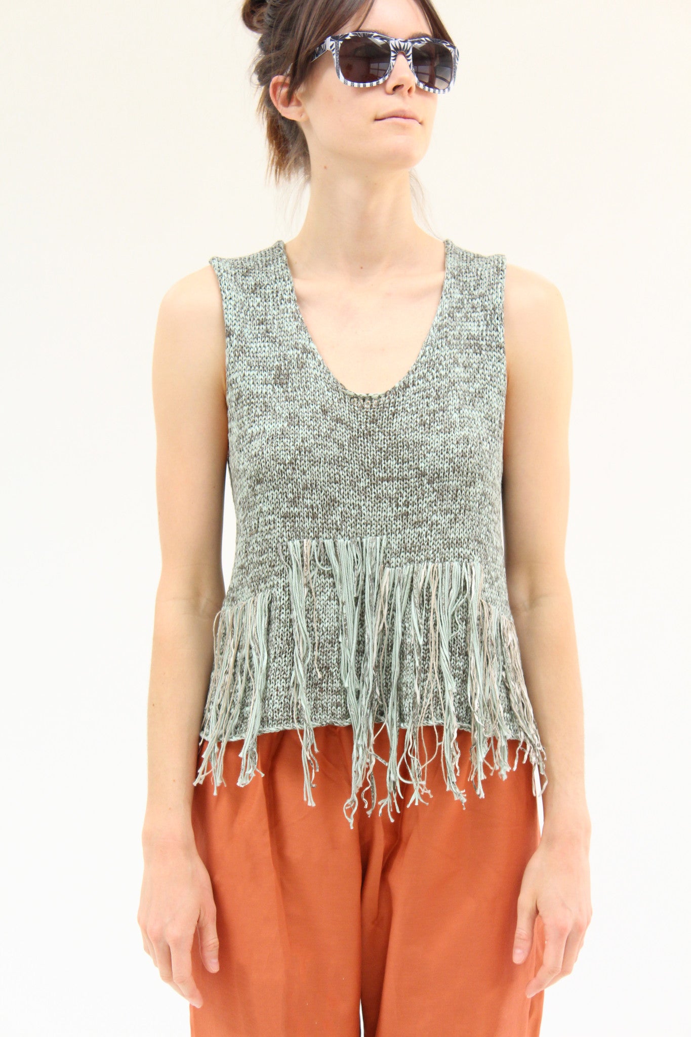 100% Organic cotton, handknit, fringe front detail. Exclusive to Beklina.