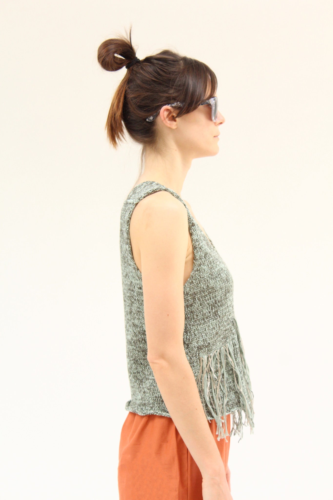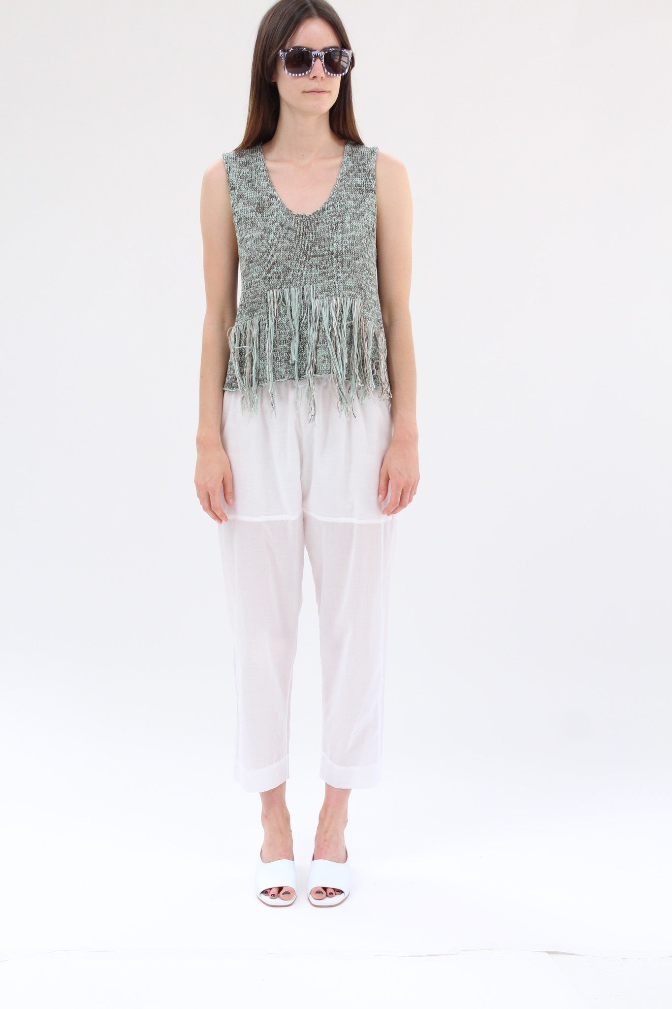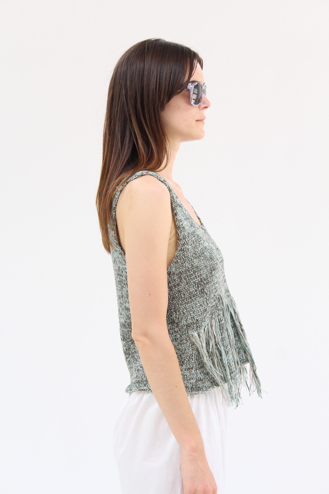 100% Organic cotton, handknit, fringe front detail. Exclusive to Beklina.