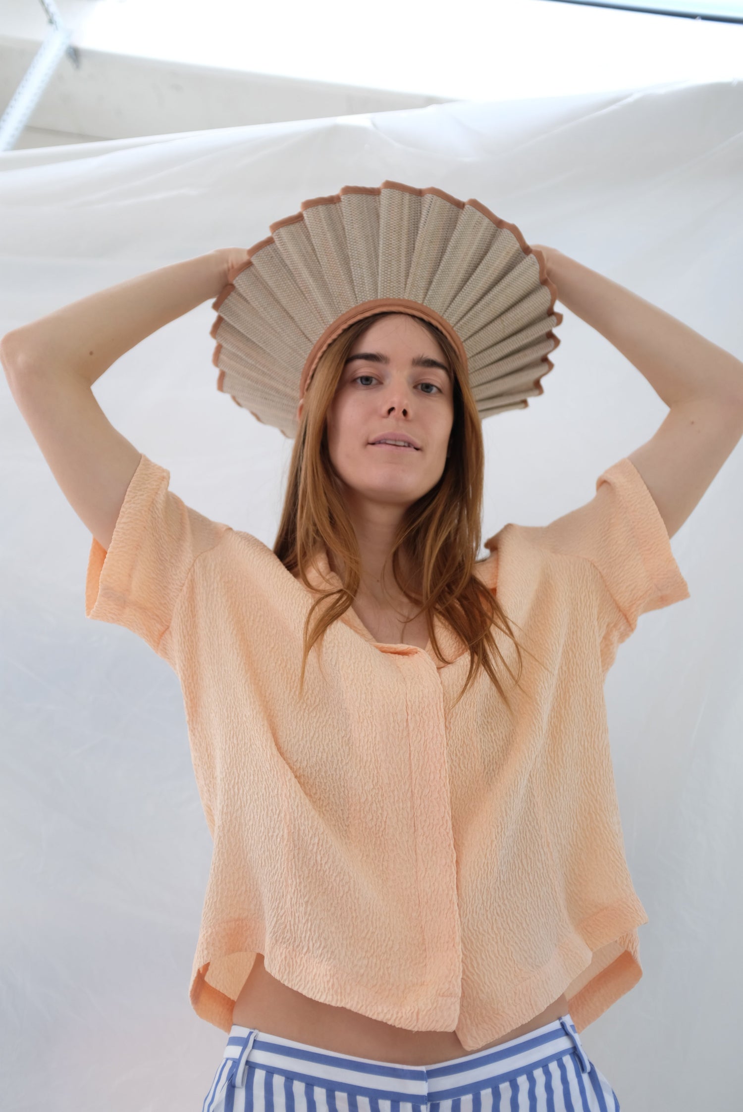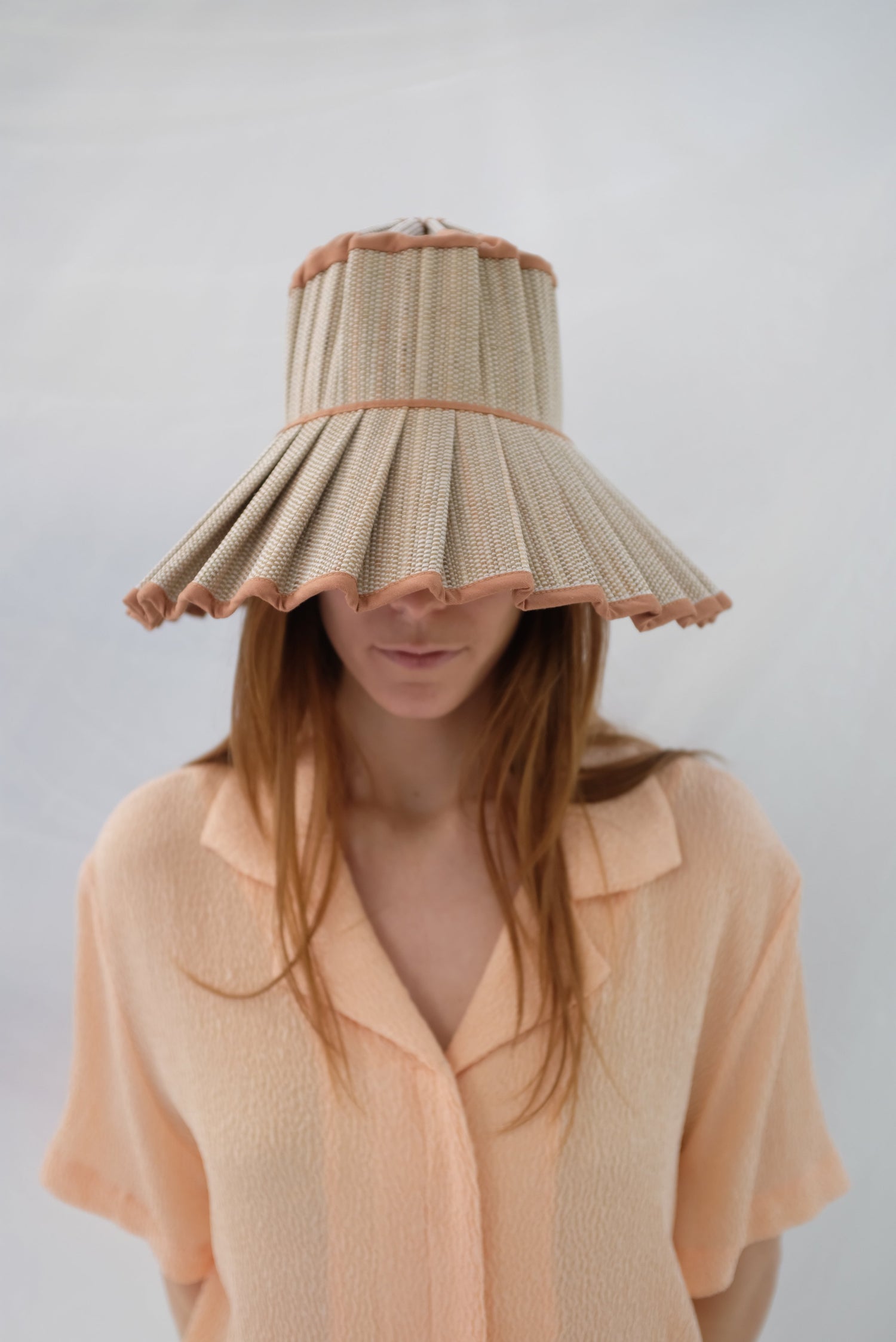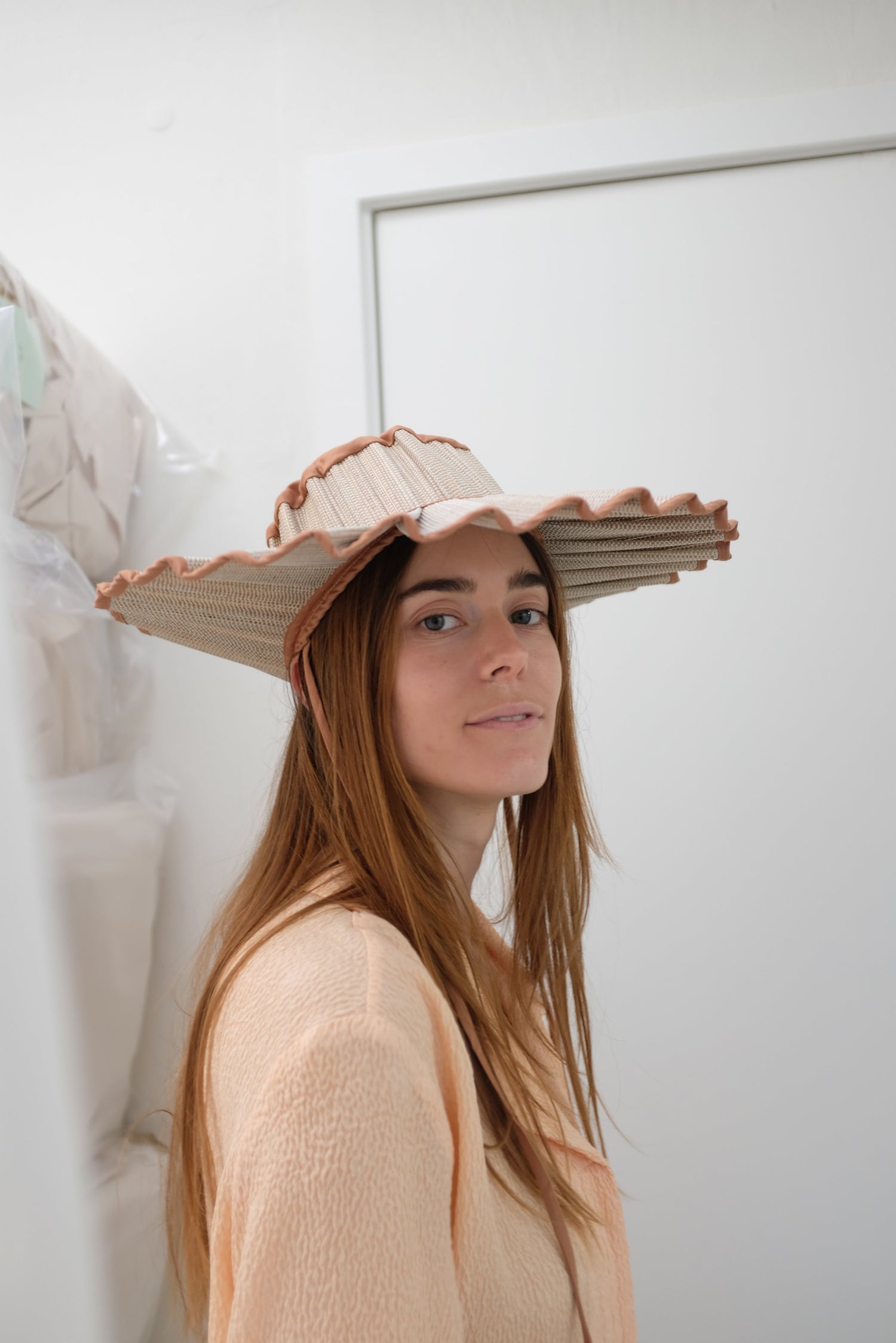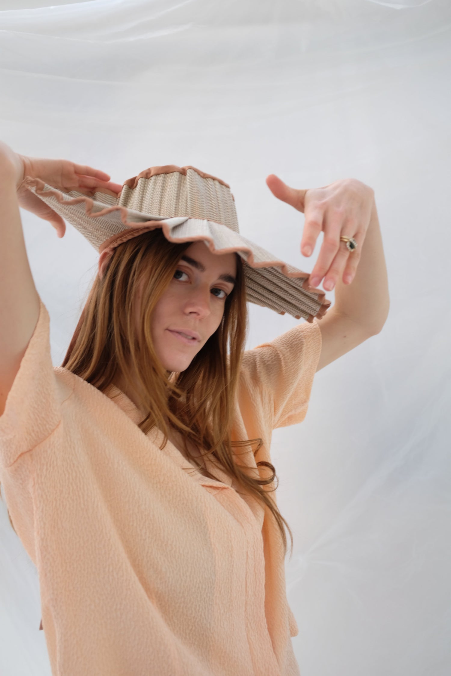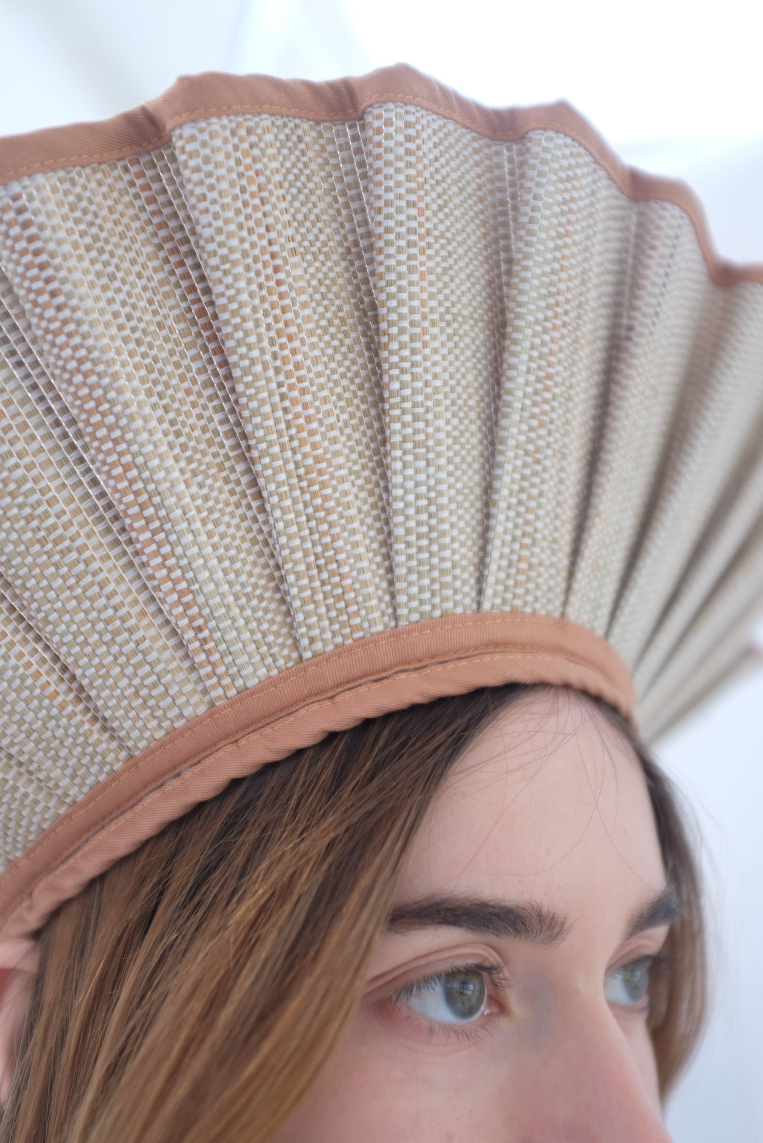 Handcrafted Capri hat made from all natural fibers, perfect summer essential. Great sun protection, water resistant, breathable. Collapses in half for easy transport and packability. Ties at base of hat for anchoring during breezes. 100% Natural Organic Grass Fiber.