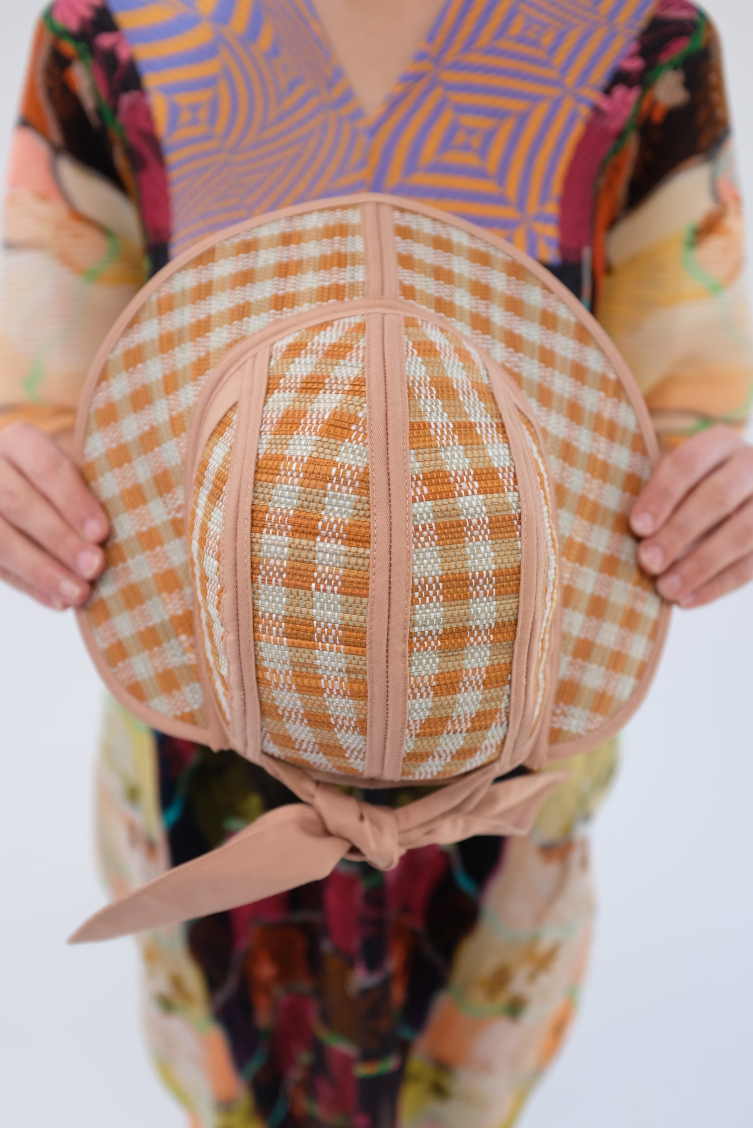 1930's inspired design, featuring a woven crown, flat mid-length brim and ties at the back for securing and adjustment. Carefully handcrafted from 100% Natural Organic Grass Fibers. Collapse in half, for ease of travel.