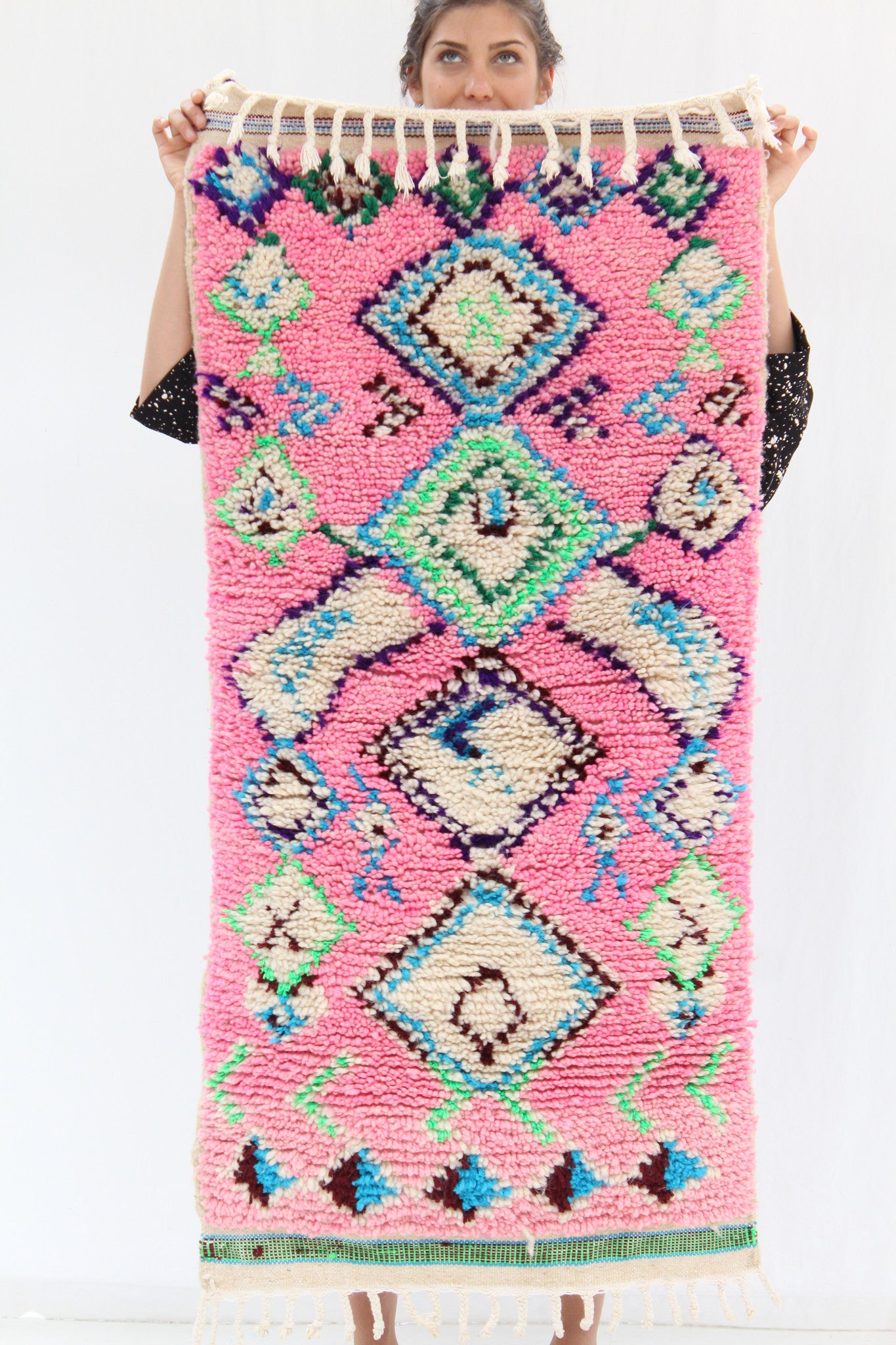 Morocco's Berber craft Azilal rugs. They can also be hung on walls. Authentic vintage rugs that make a warm statement. Made from sustainable materials by local artisans – including cotton and wool. Each is one of a kind and collectable.