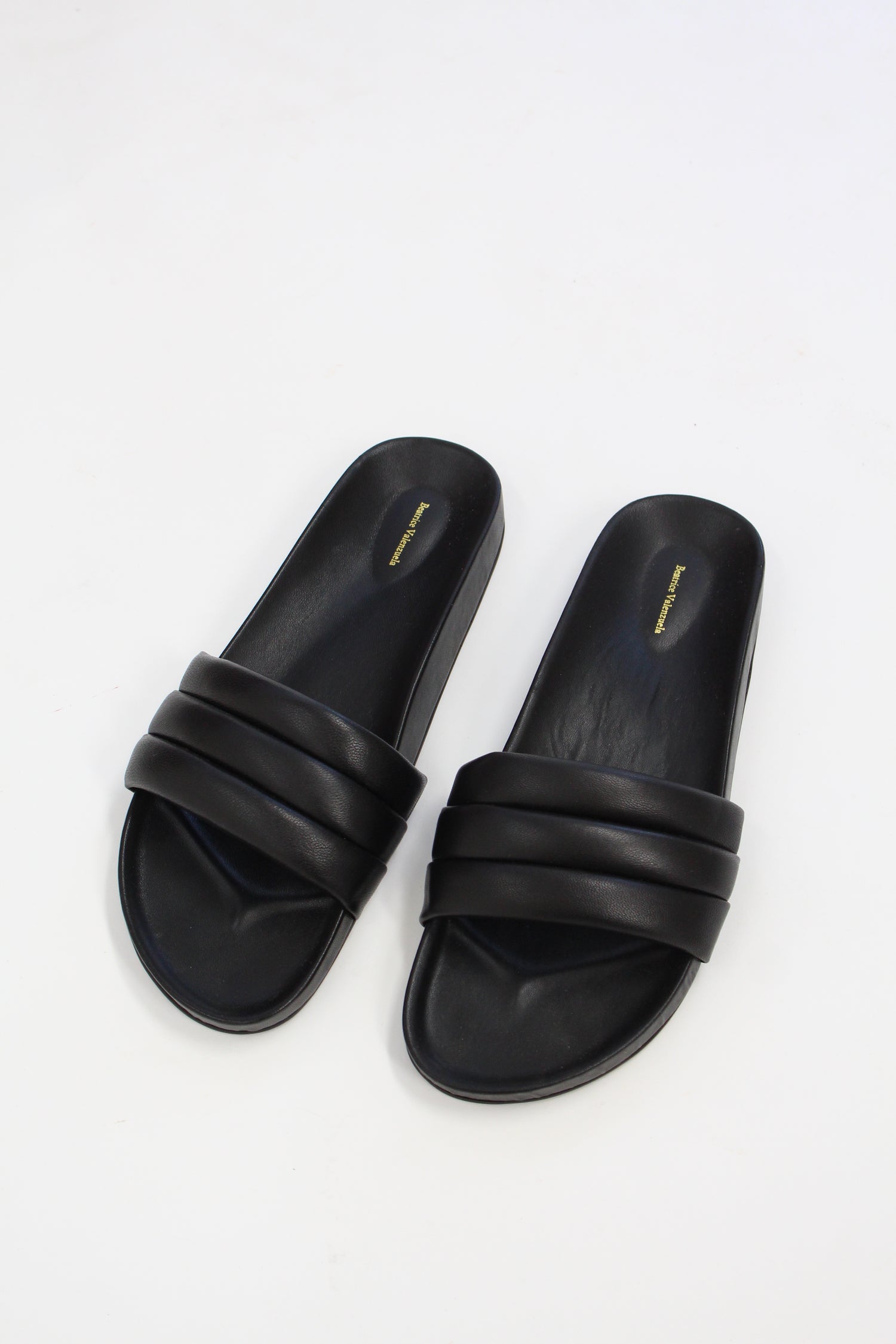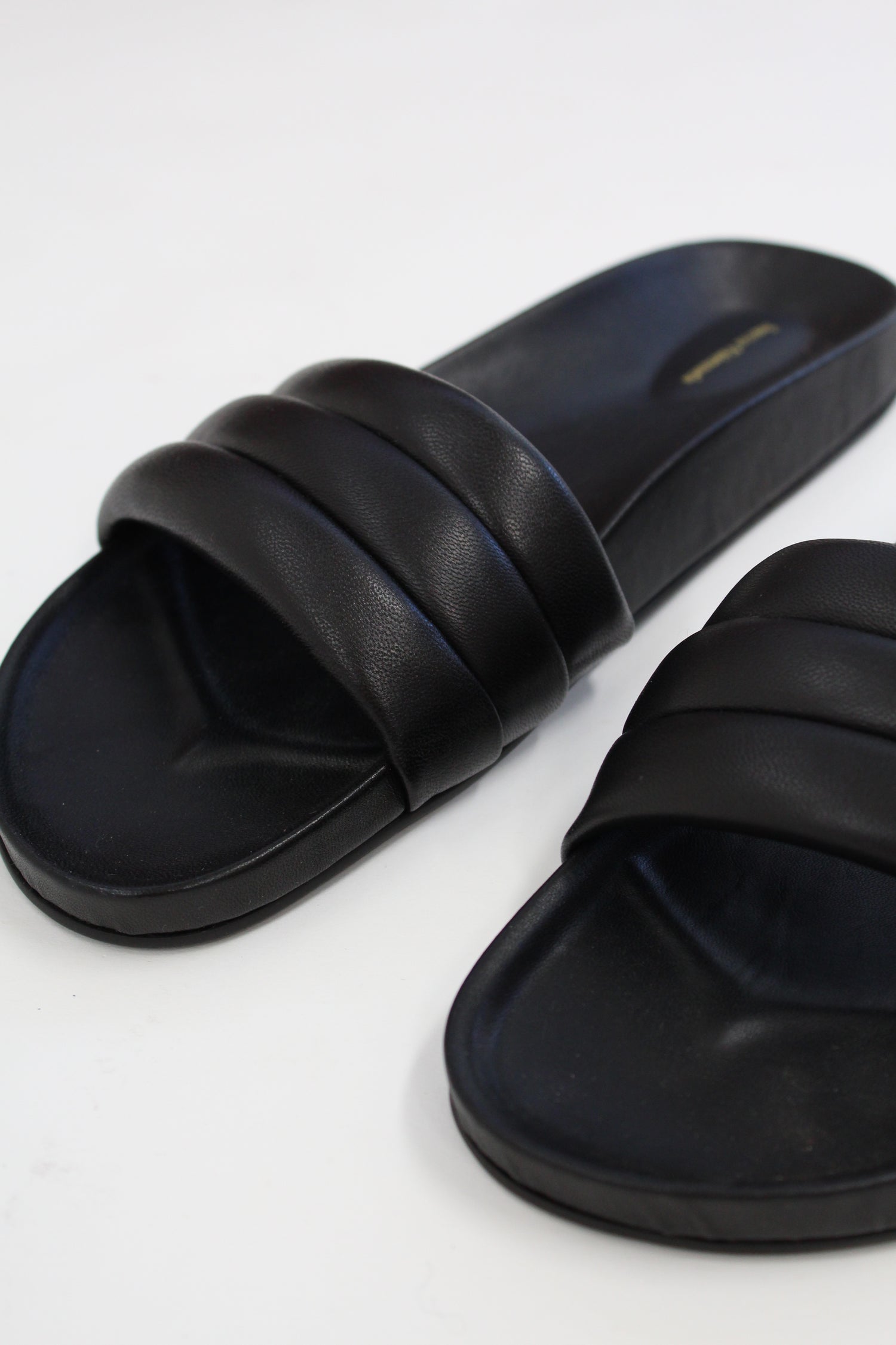 The Monocolor Sandalia features a dense sculpted foam sole wrapped in soft lambskin. The leather uppers will mold to your feet with time, and may feel tight for the first couple of wears. Fits true to size. For half sizes, size up.