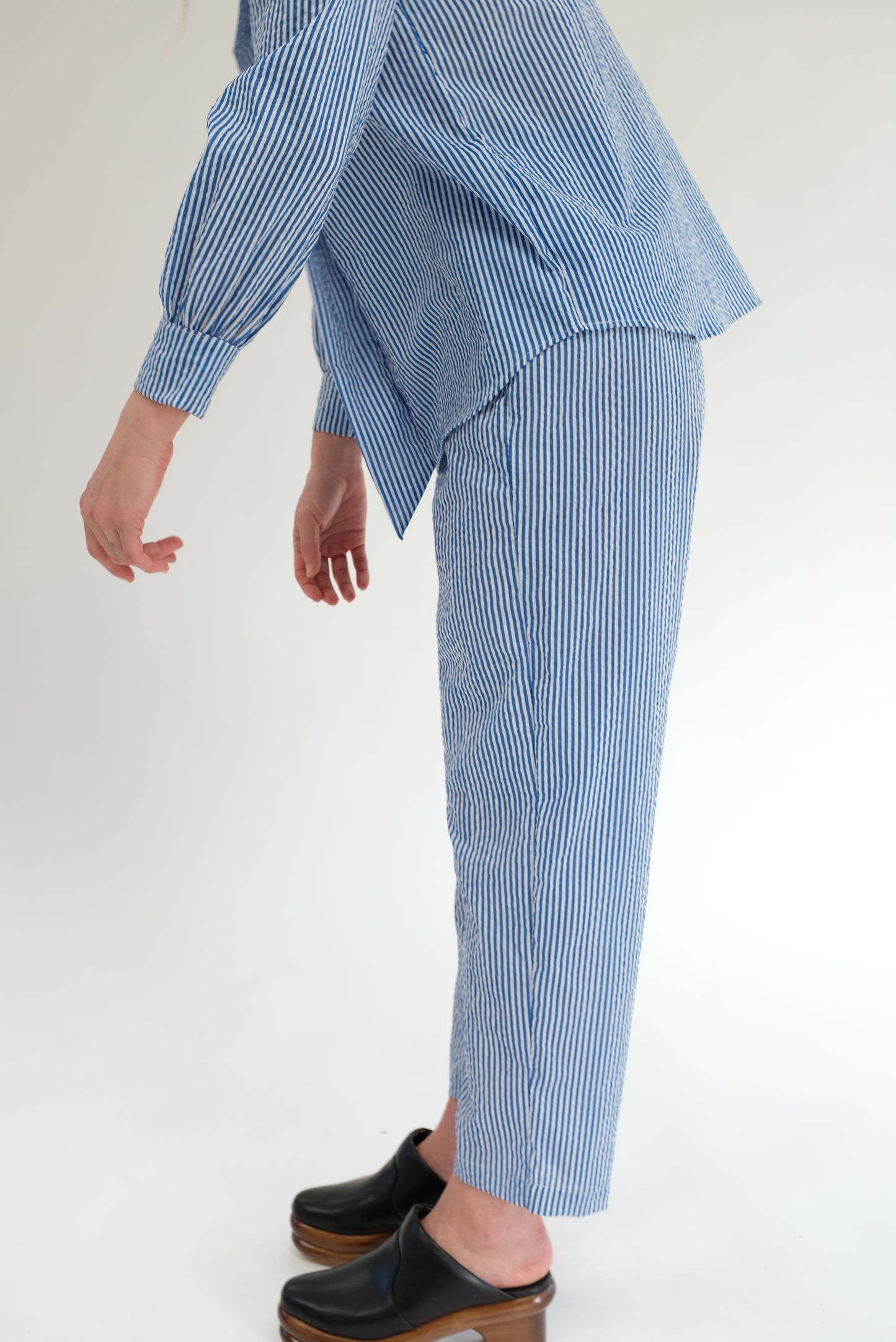 Light weight pant, made for comfort. Slightly cropped if tall. To be worn at true waist but work a little higher or a little lower. Loose drape fit. Model is wearing a small/medium. 100% Japanese woven cotton.