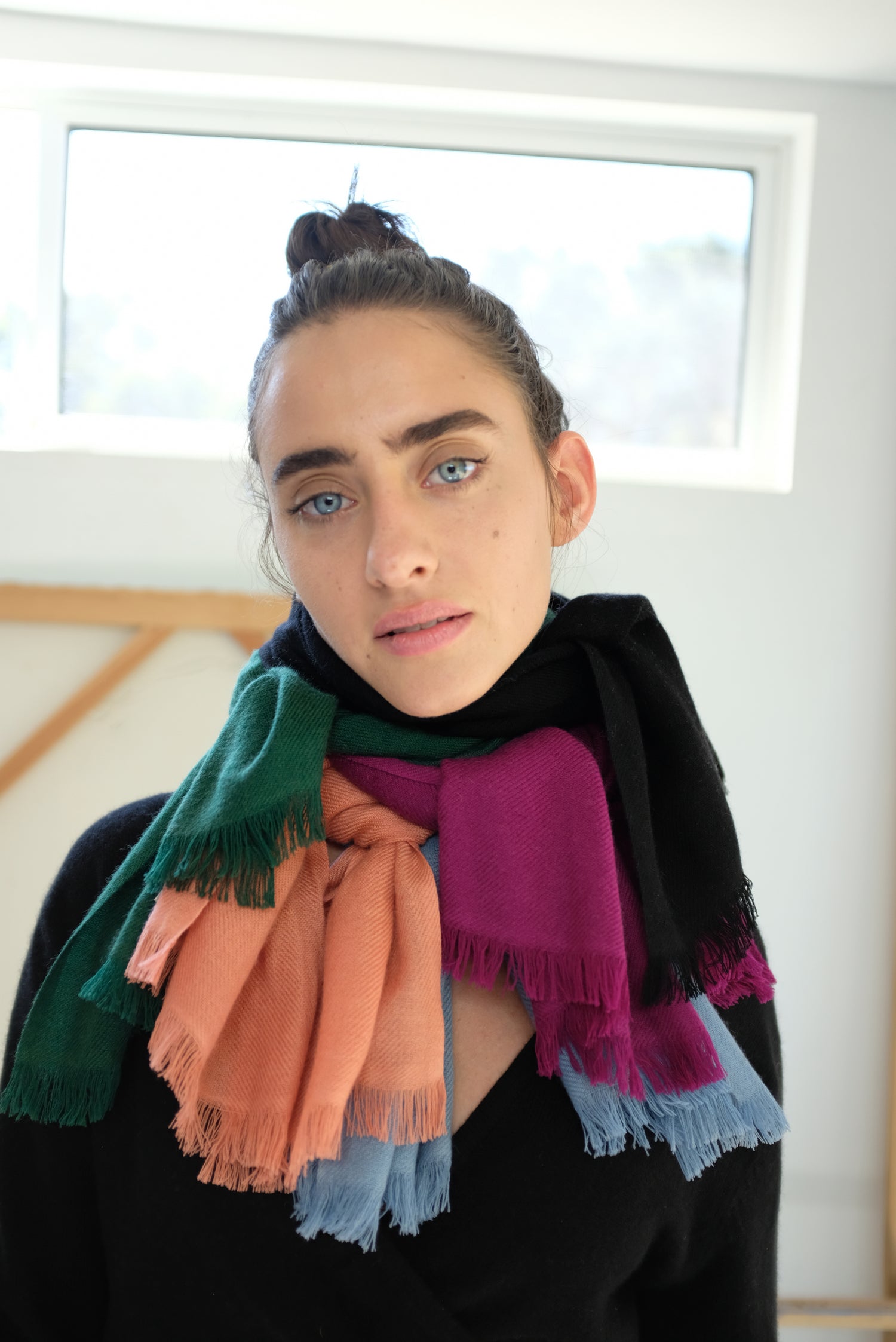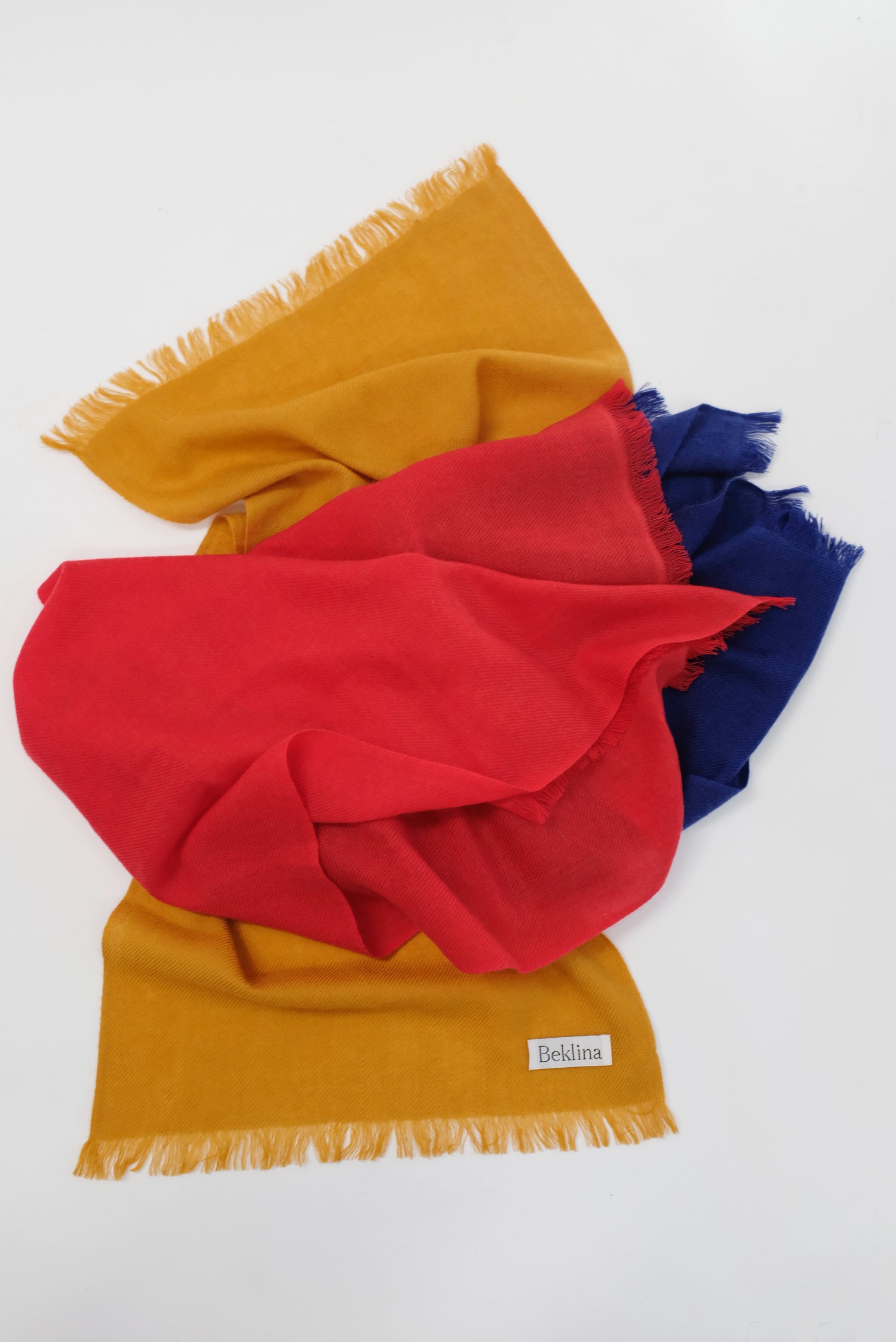 100% cashmere, lightweight and flowing with amazing warmth, ultra luxurious scarves. Ideal travel mates and great gifts. Aprox 36" x 13.5".