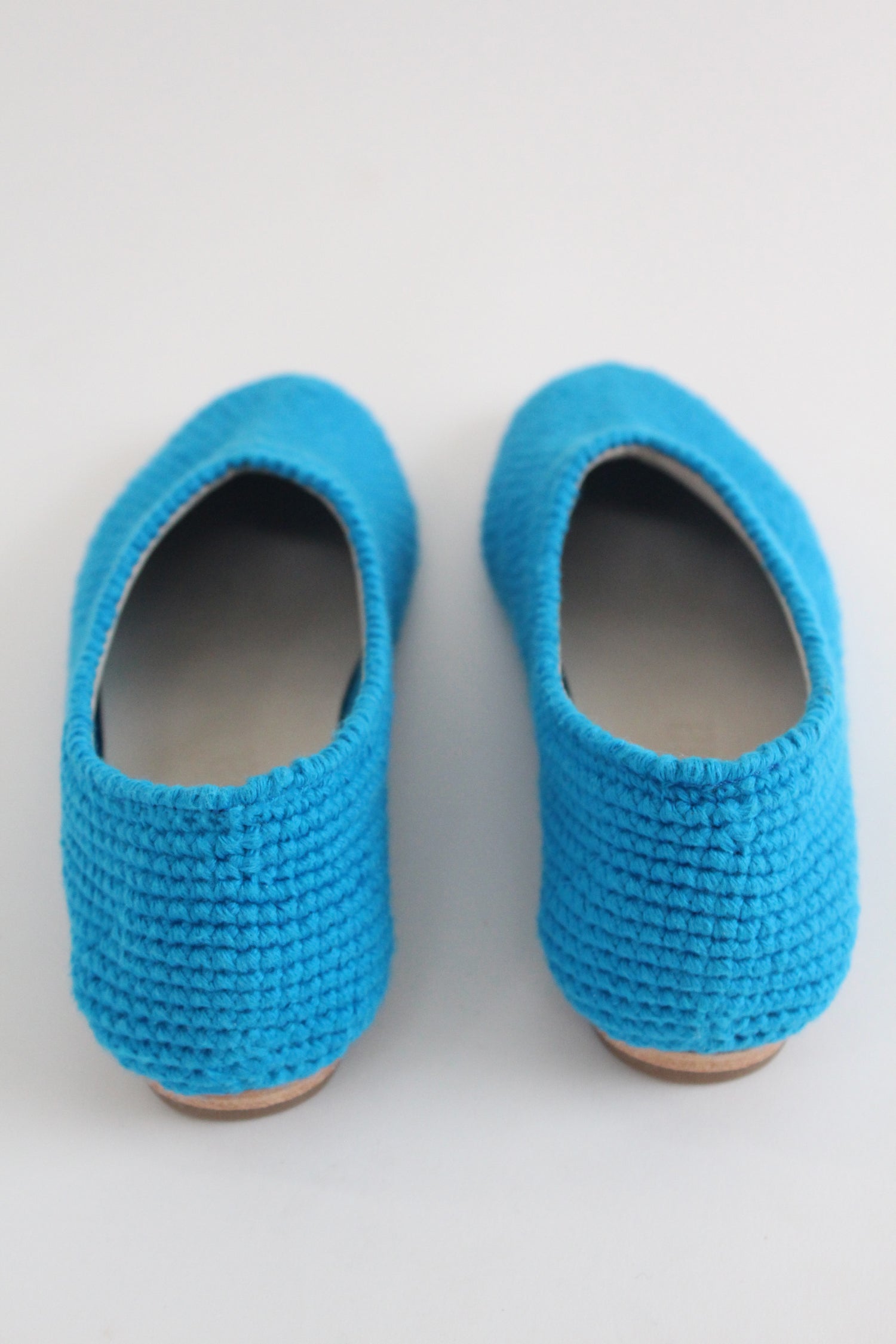 100% Hand crocheted Peruvian cotton. Luxurious glove fitting flats that mold to your feet and breathe. We're extremely proud of these beautiful handmade shoes.
