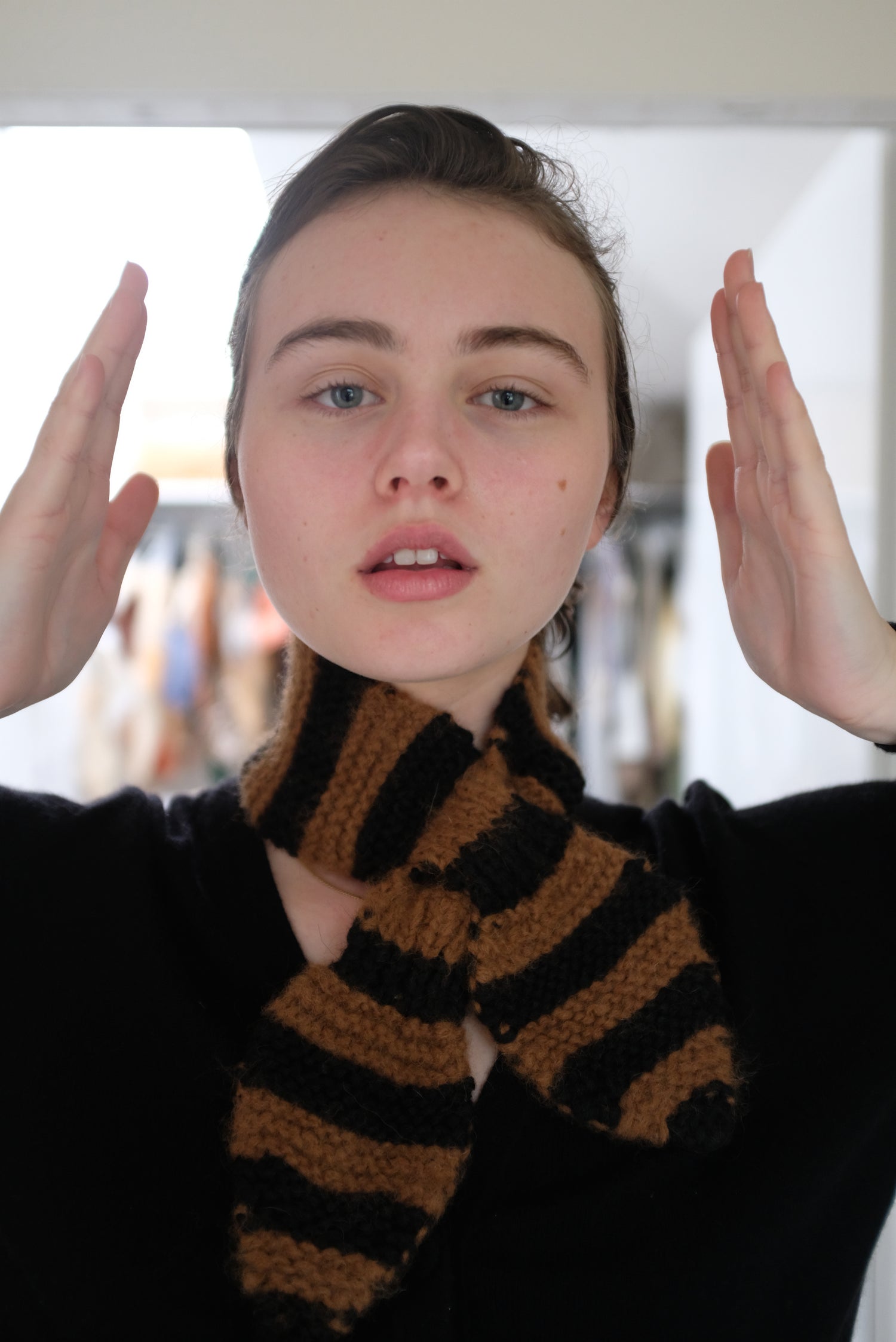 Hand knit 100% baby alpaca. Adjustable fit, one size fits all. Garter stitch, warm and cozy. The perfect gift!