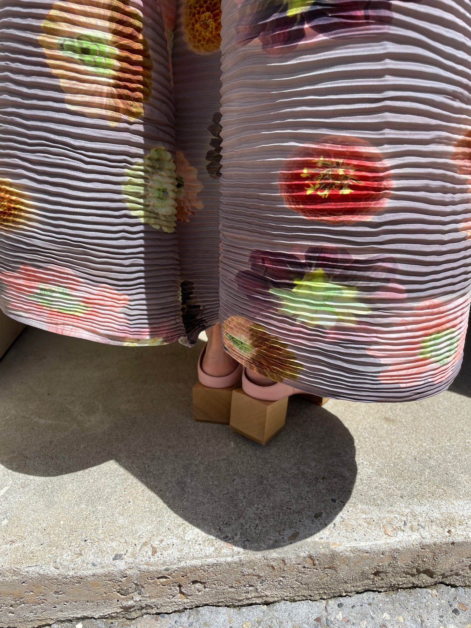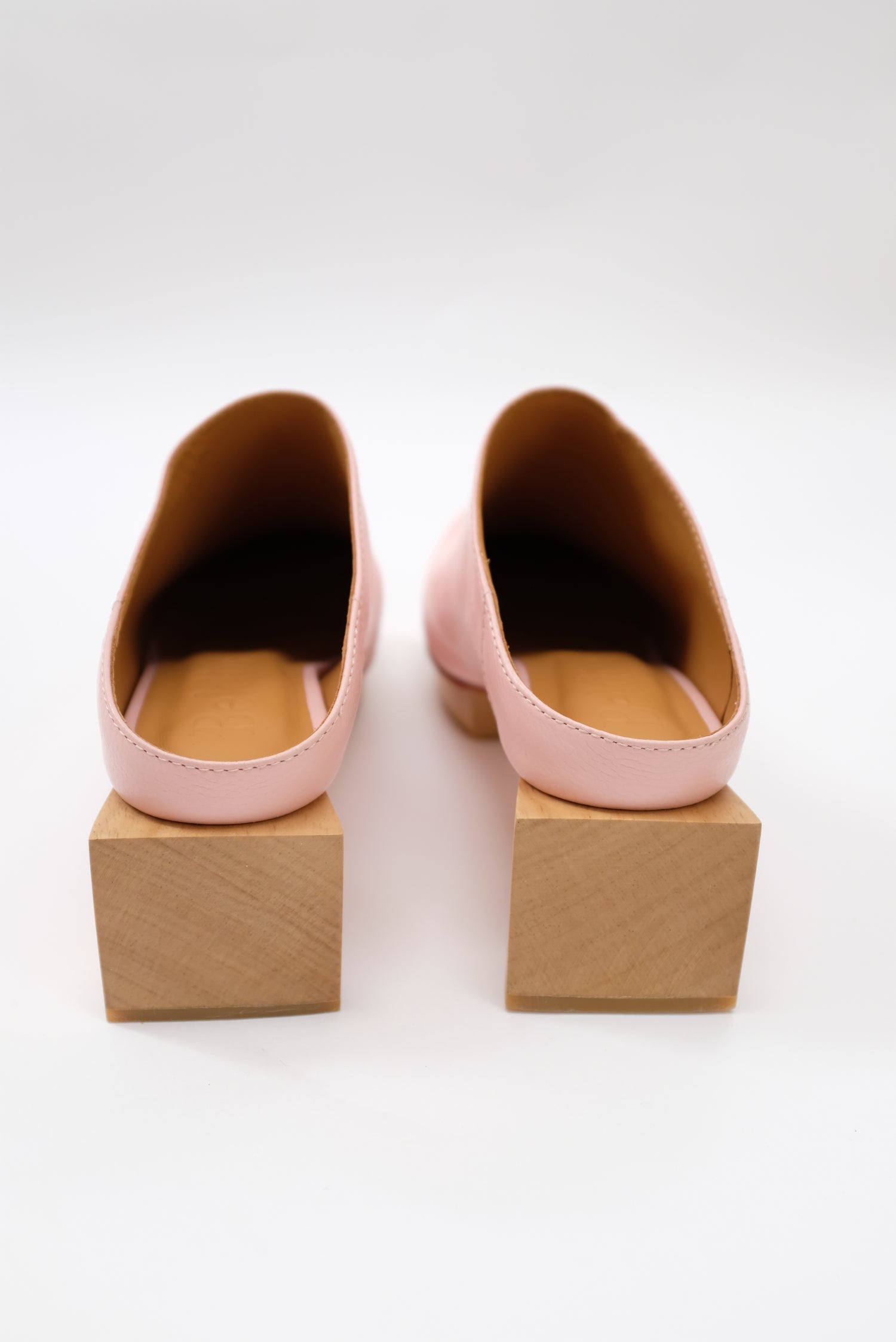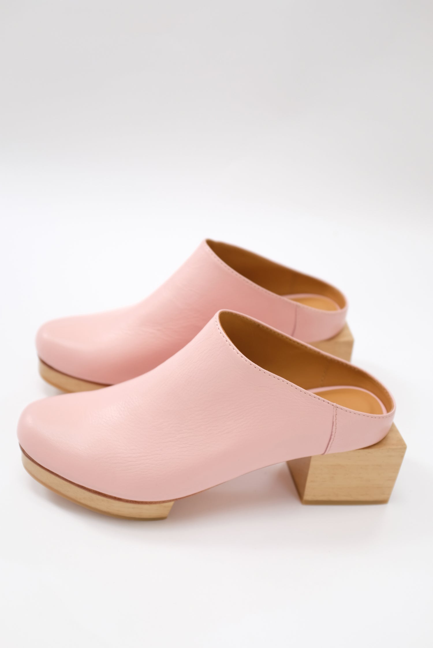 Hand carved wooden platform split heel, comfy mule slide upper 100% Italian pebbled leather uppers and leather lined. 2" back heel and 1" front platform. The heel is split in two parts, allowing the shoe's middle leather layer base to bend, making it very wearable and ultra comfortable.