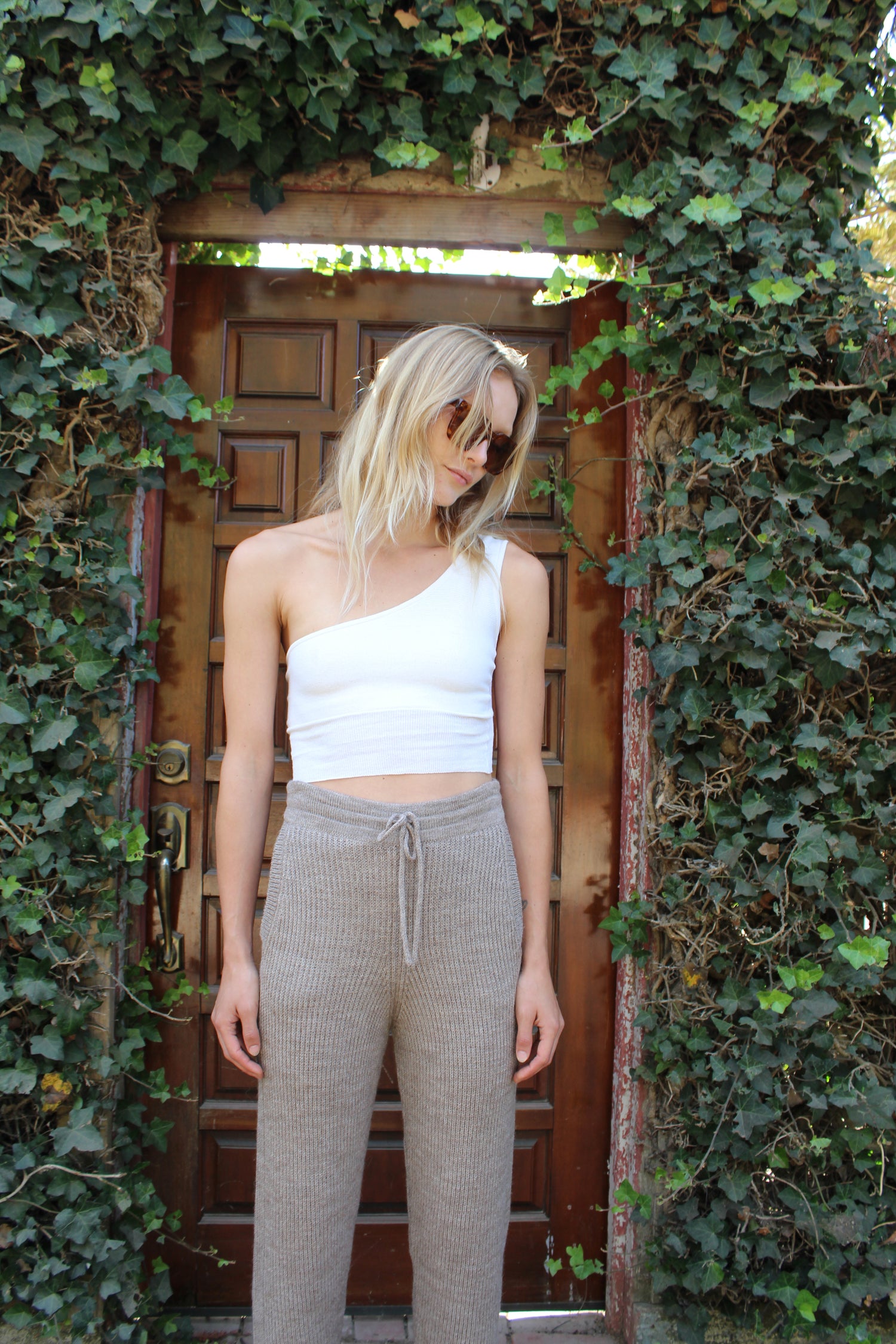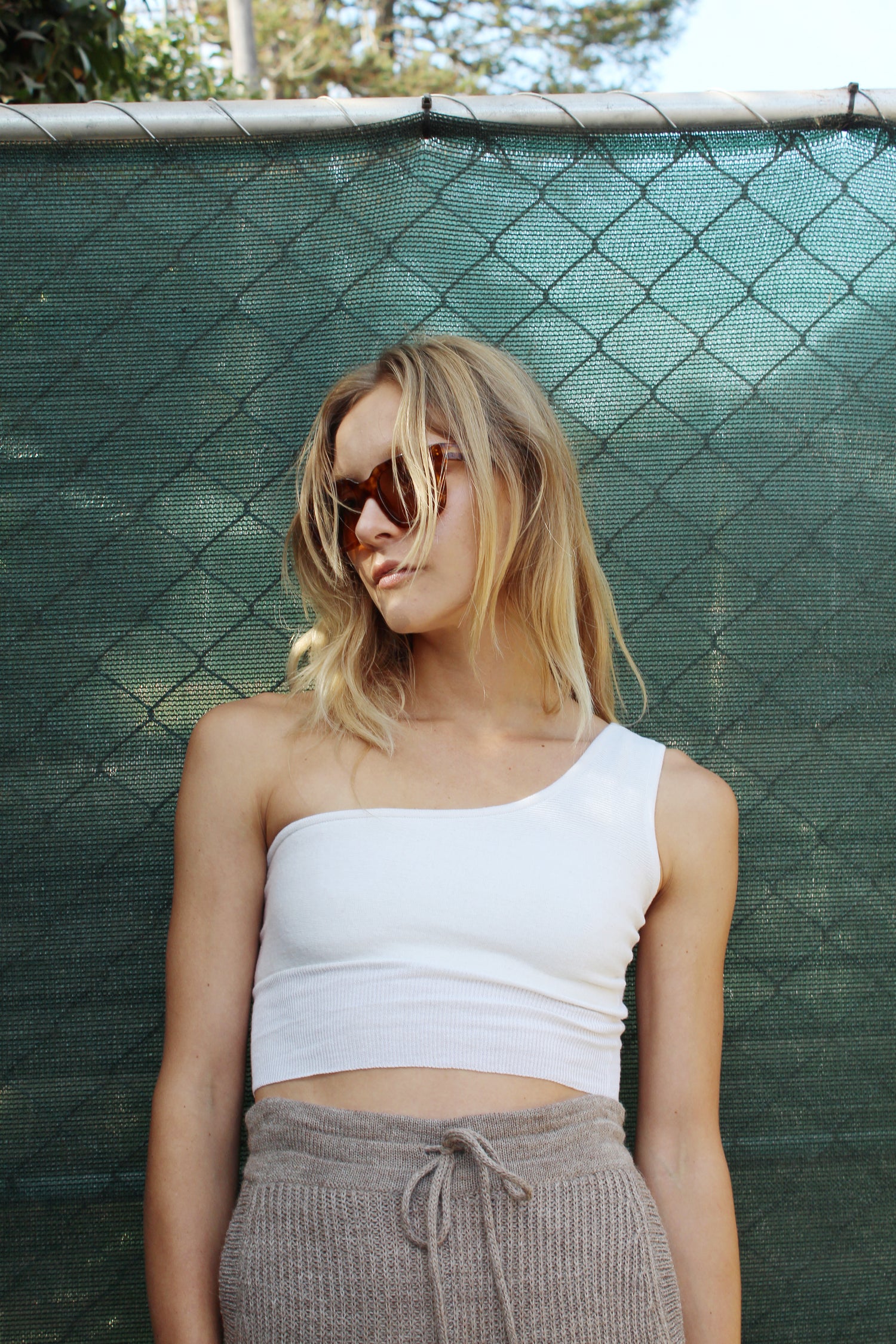 100% Organic cotton, double front ribbed panel, 2” ribbed hem, natural stretch. Alexis is wearing size small/medium. Gives medium support, but full coverage, not sheer. Wear as a top, bra, or as a layering piece. Pulls over head. Available in two sizes: s/m and m/l