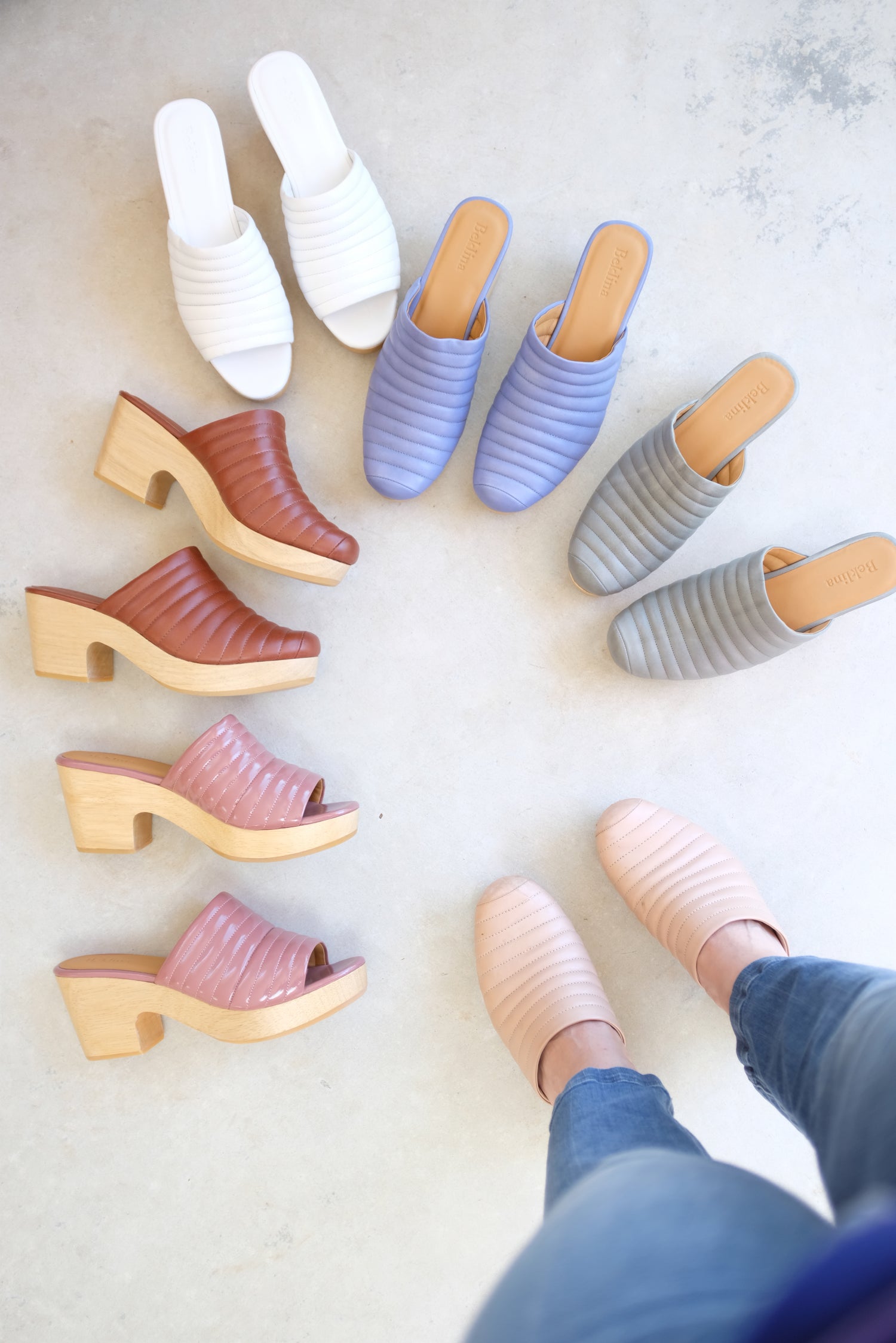 Hand carved wooden platform heel, 100% Italian Patent leather uppers and leather lined. 2 1/2" heel. Ultra comfortable, all-day-wearable, wood wedge clogs! Free of gauche staples.