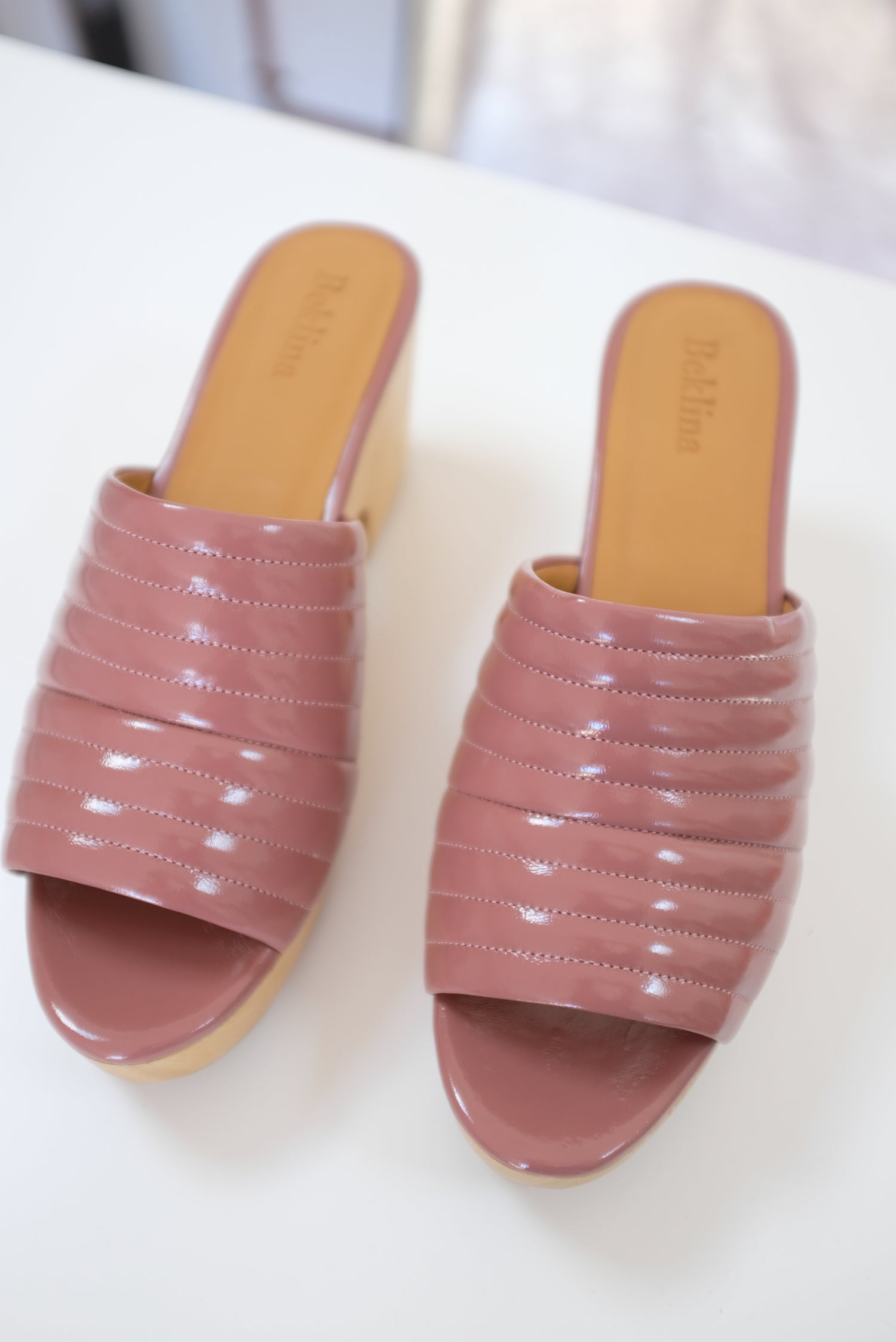 Beklina Ribbed Clog Patent Rose