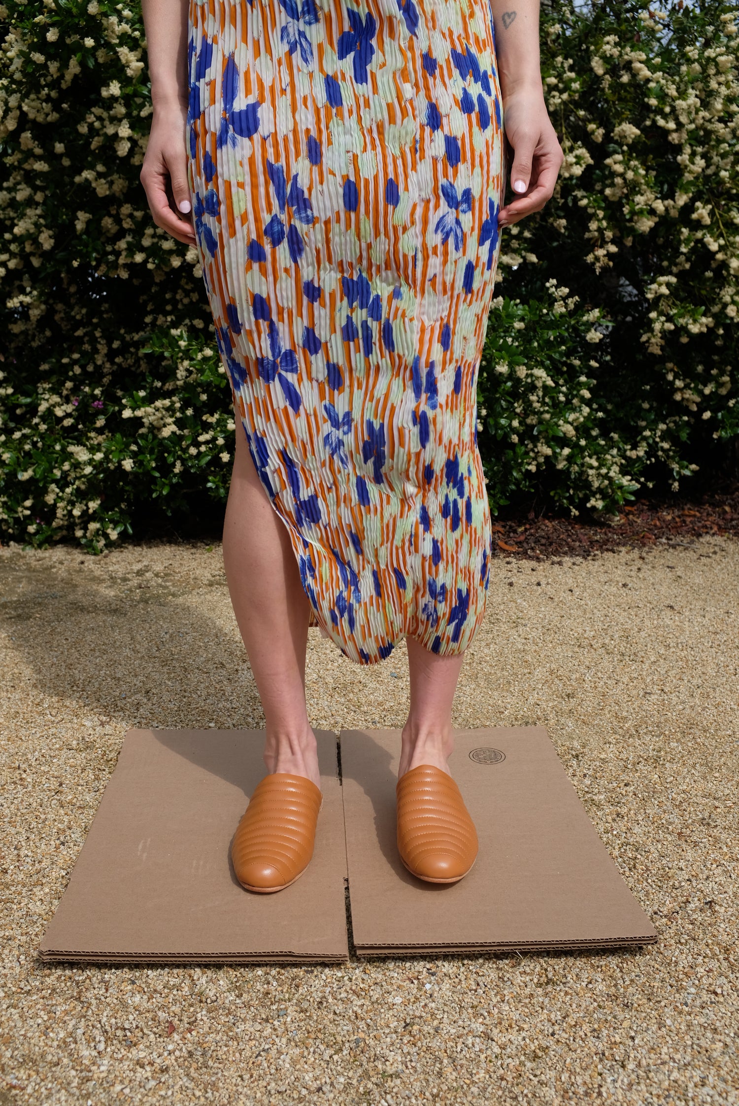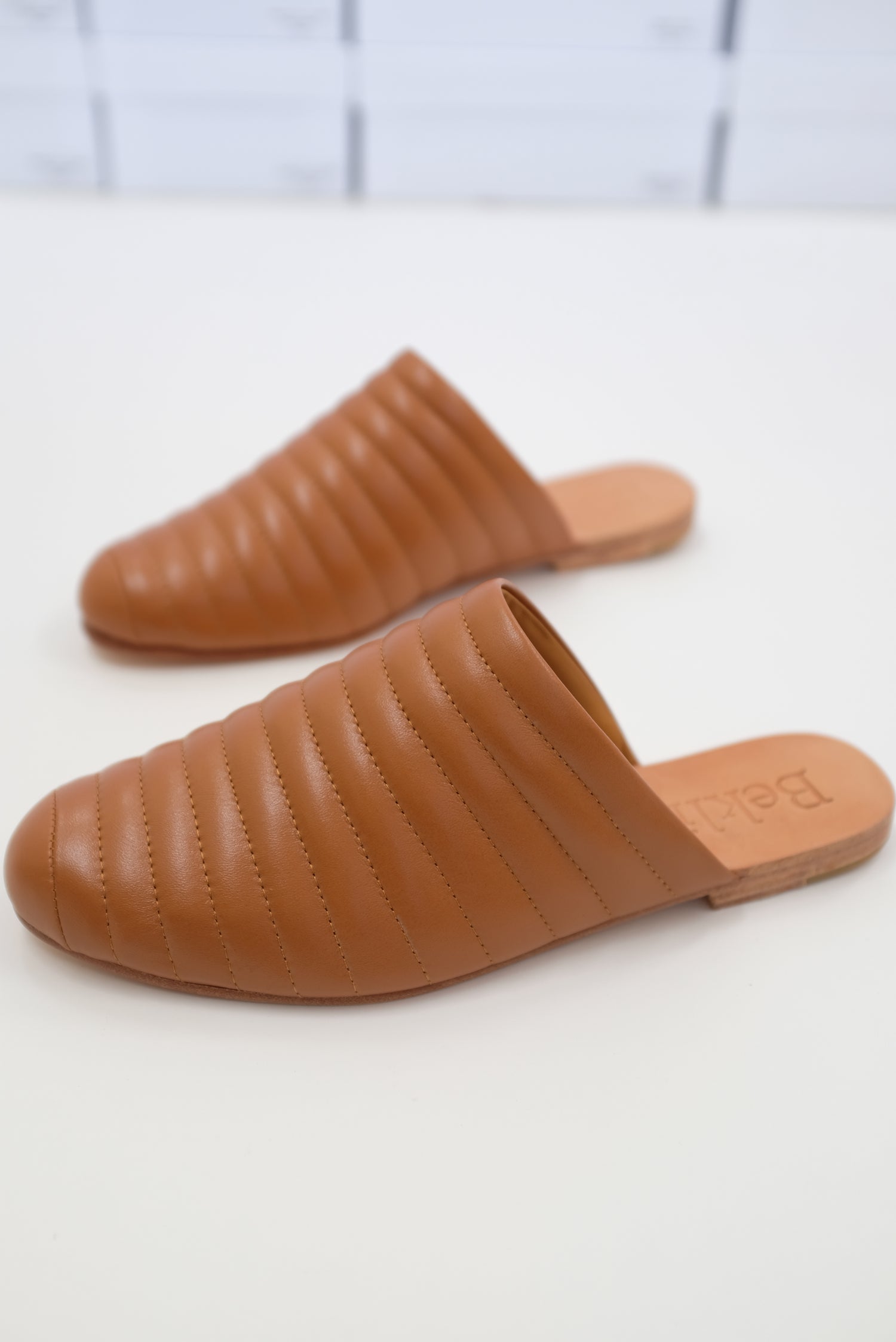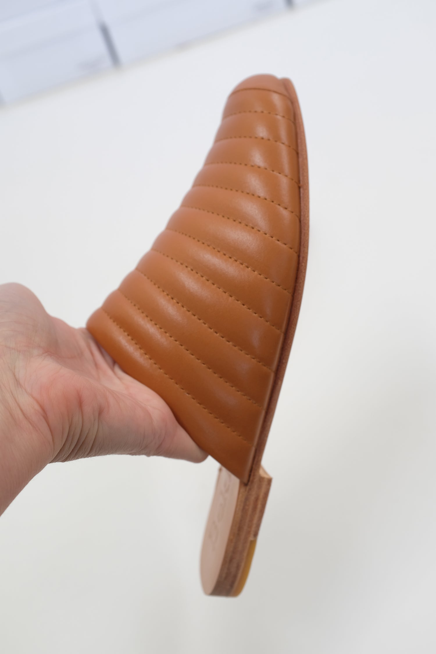 Ultra comfortable, easy all-day-wearable flat slides. Luxurious soft ribbed leather. Running true to size. 100% leather and leather lined.