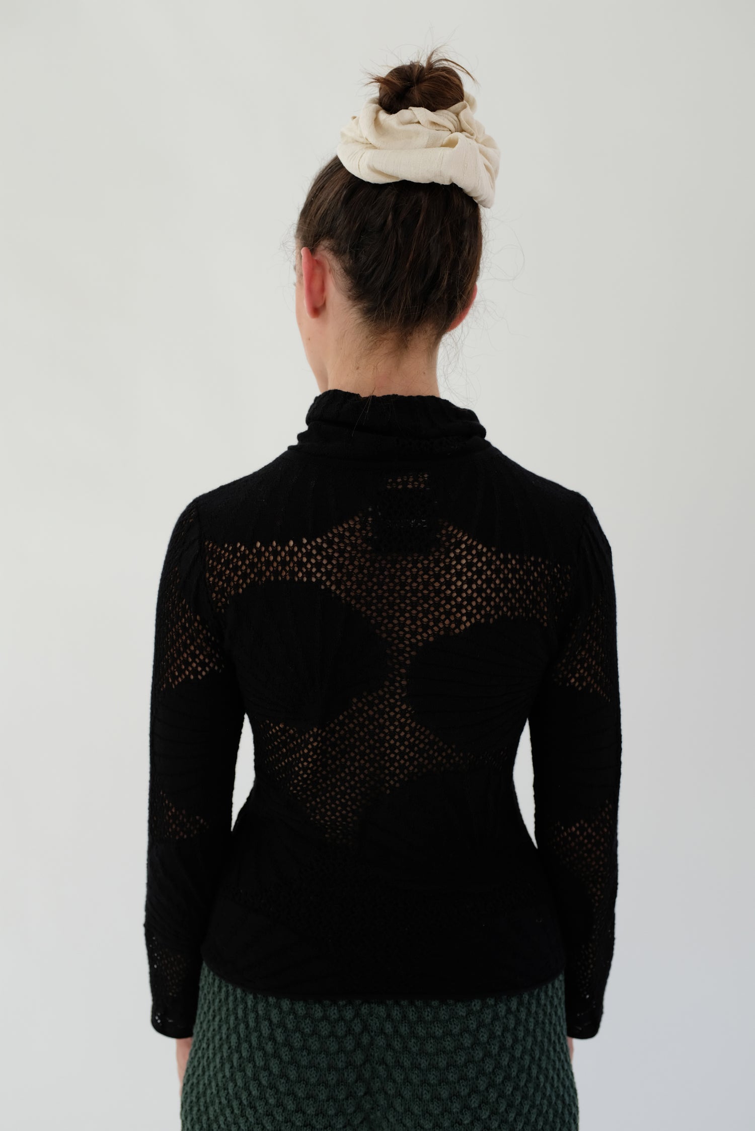 Hand knit cotton shell lace turtleneck. Long sleeve, 7" high neck, dress up or down. Runs true to size, with a natural gentle built in stretch, washable, not overly delicate. 100% Cotton, ultra soft second skin. Exclusive to Beklina.