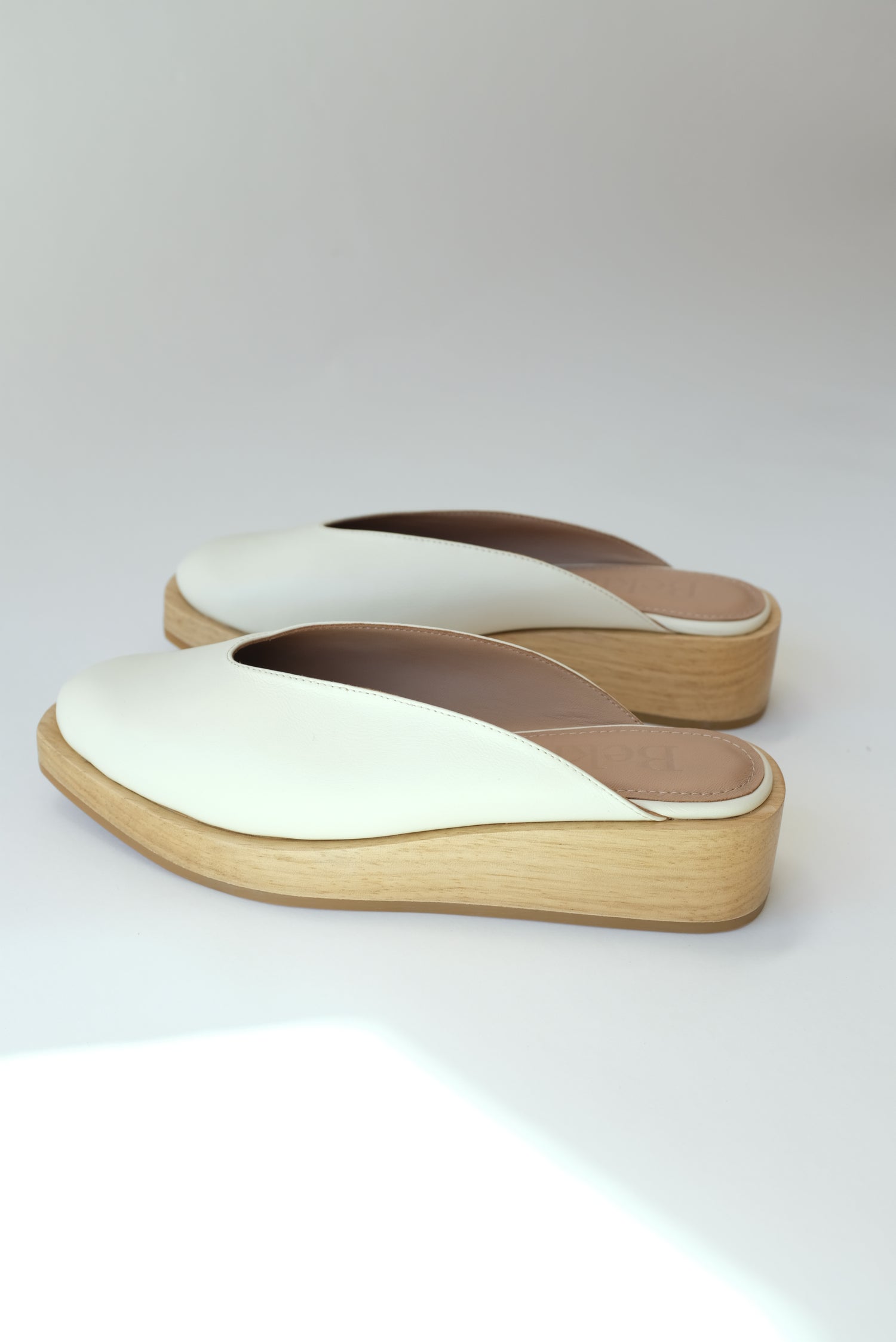 Beautiful mid-height hand carved wooden wedge clog, with a leather upper, and leather lined. Total heel height is 1 1/2".