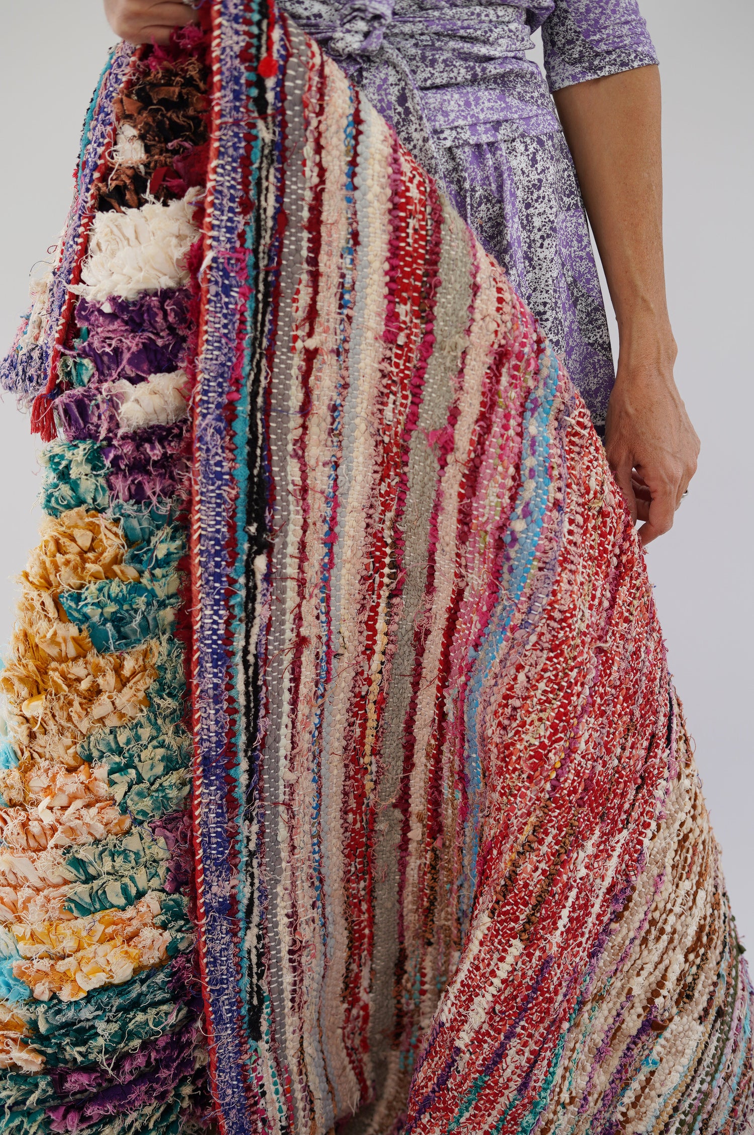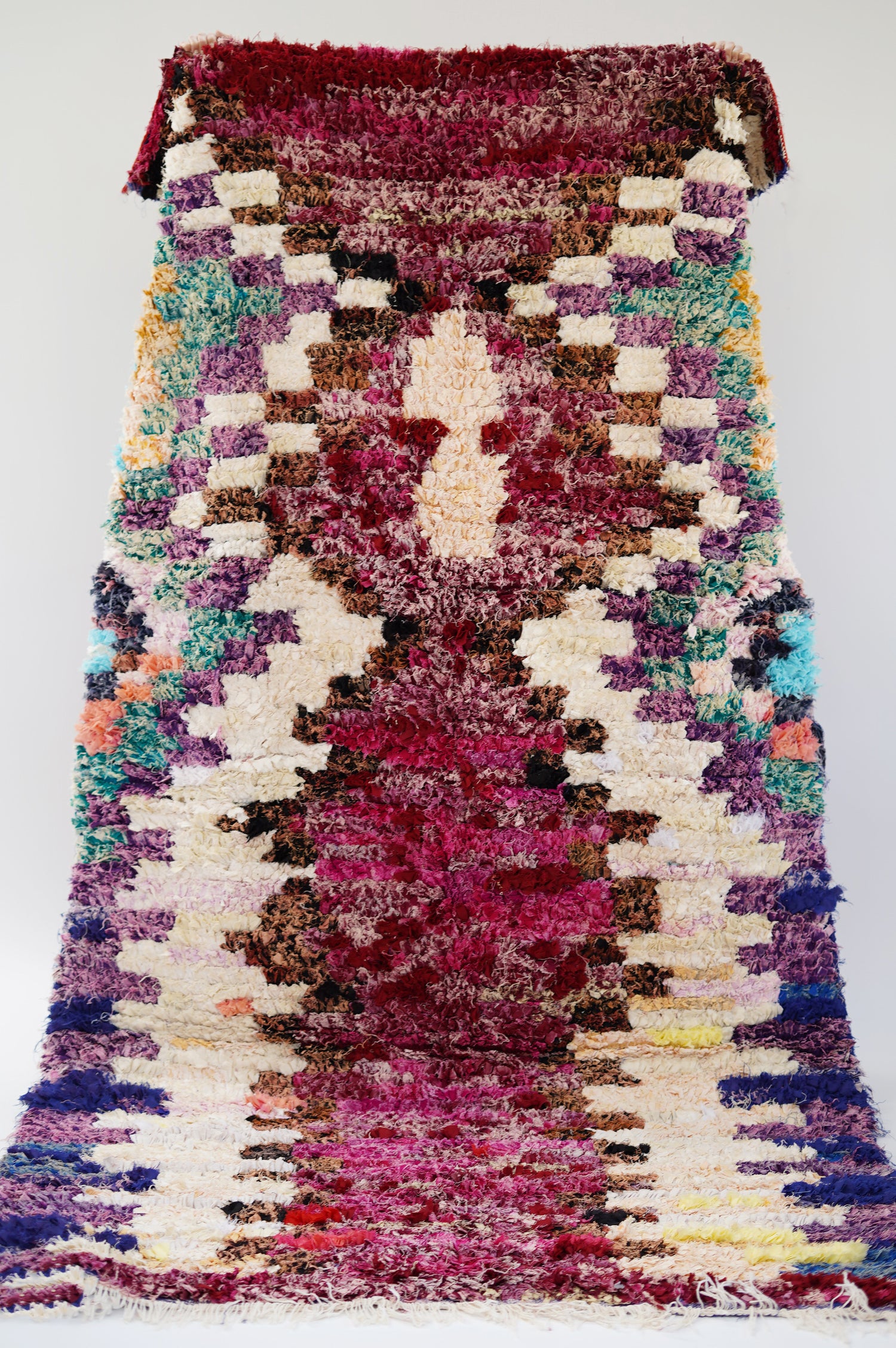 Morocco's Berber craft Boucherouite rugs. Can also be hung on walls. Authentic vintage rugs that make a colorful and warm statement. Made from sustainable materials by local artisans – including cotton, nylon and wool. Each is one of a kind.
