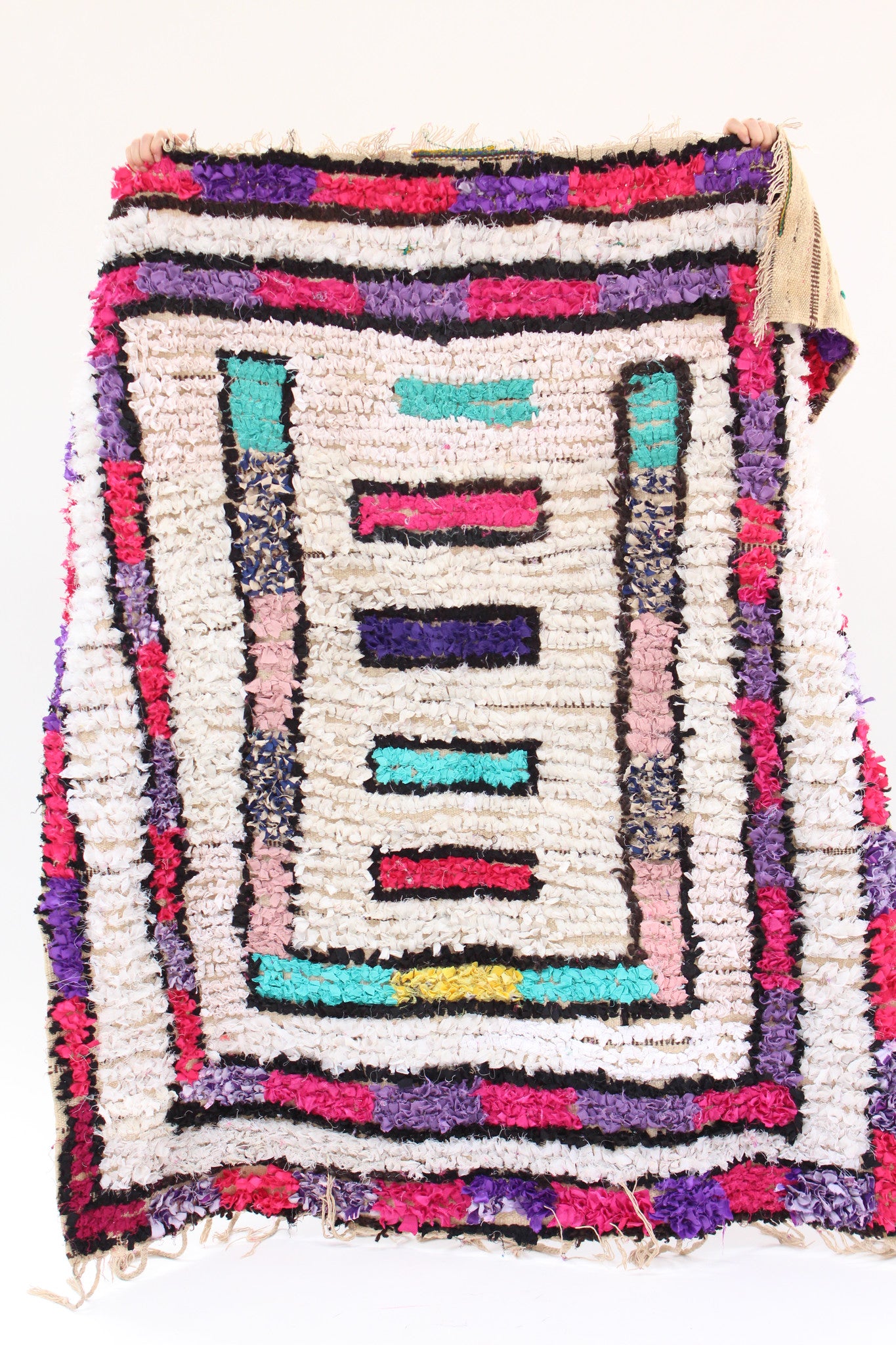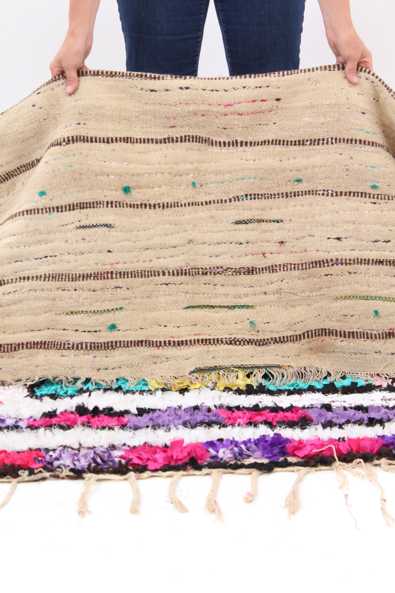 Morocco's Berber craft Boucherouite rugs. Can also be hung on walls. Authentic vintage rugs that make a colorful and warm statement. Made from sustainable materials by local artisans – including cotton, nylon and wool. Each is one of a kind.
