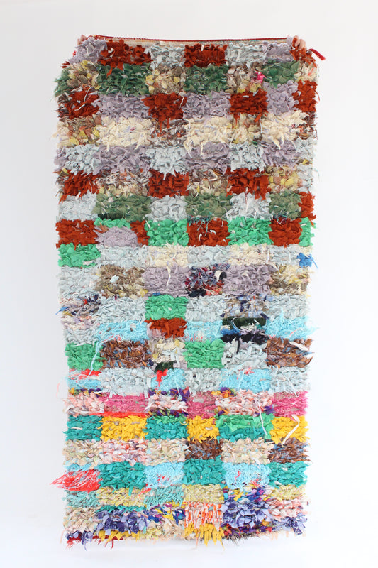 Morocco's Berber craft Boucherouite rugs. Can also be hung on walls. Authentic vintage rugs that make a colorful and warm statement. Made from sustainable materials by local artisans – including cotton, nylon and wool.