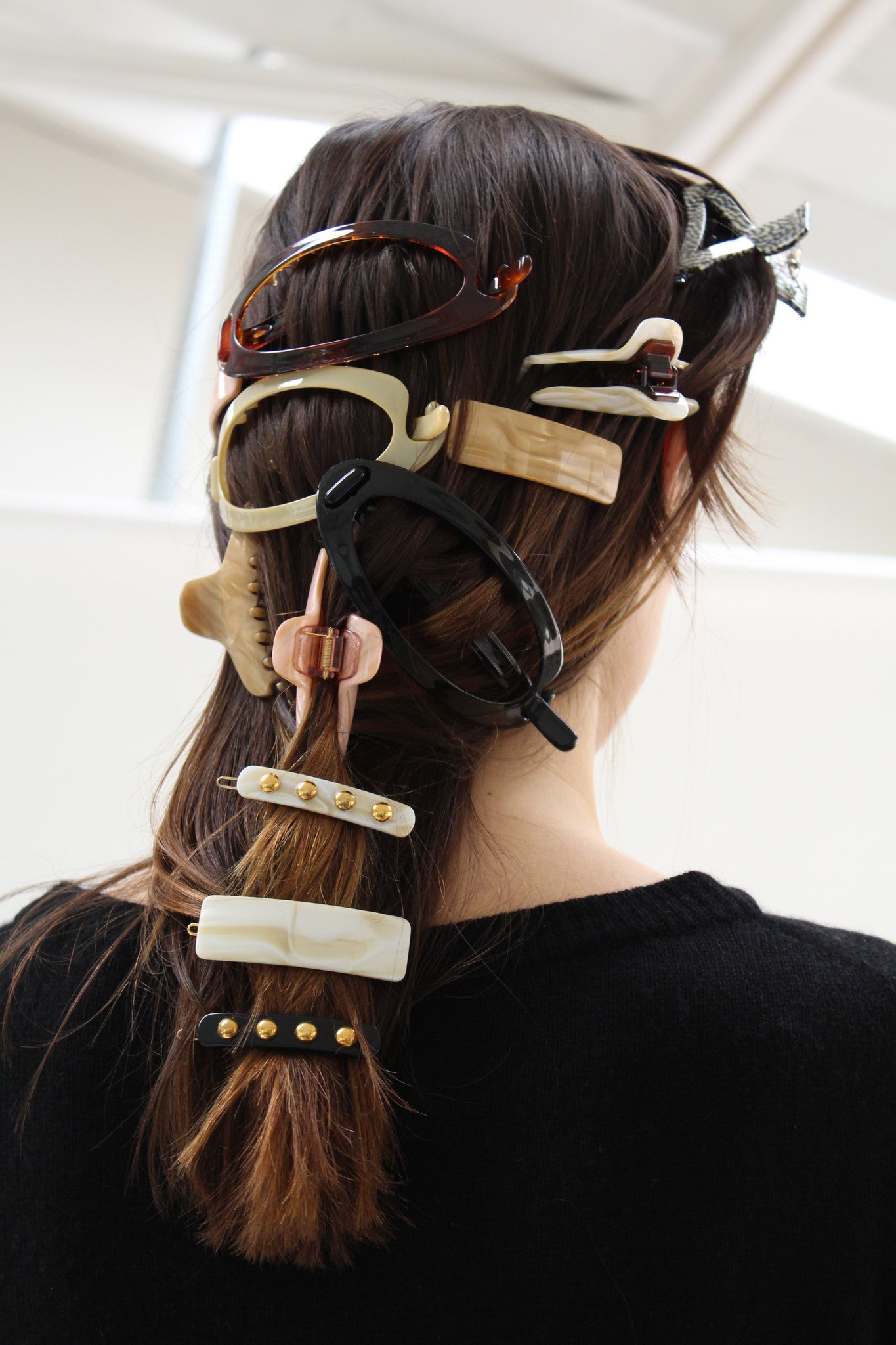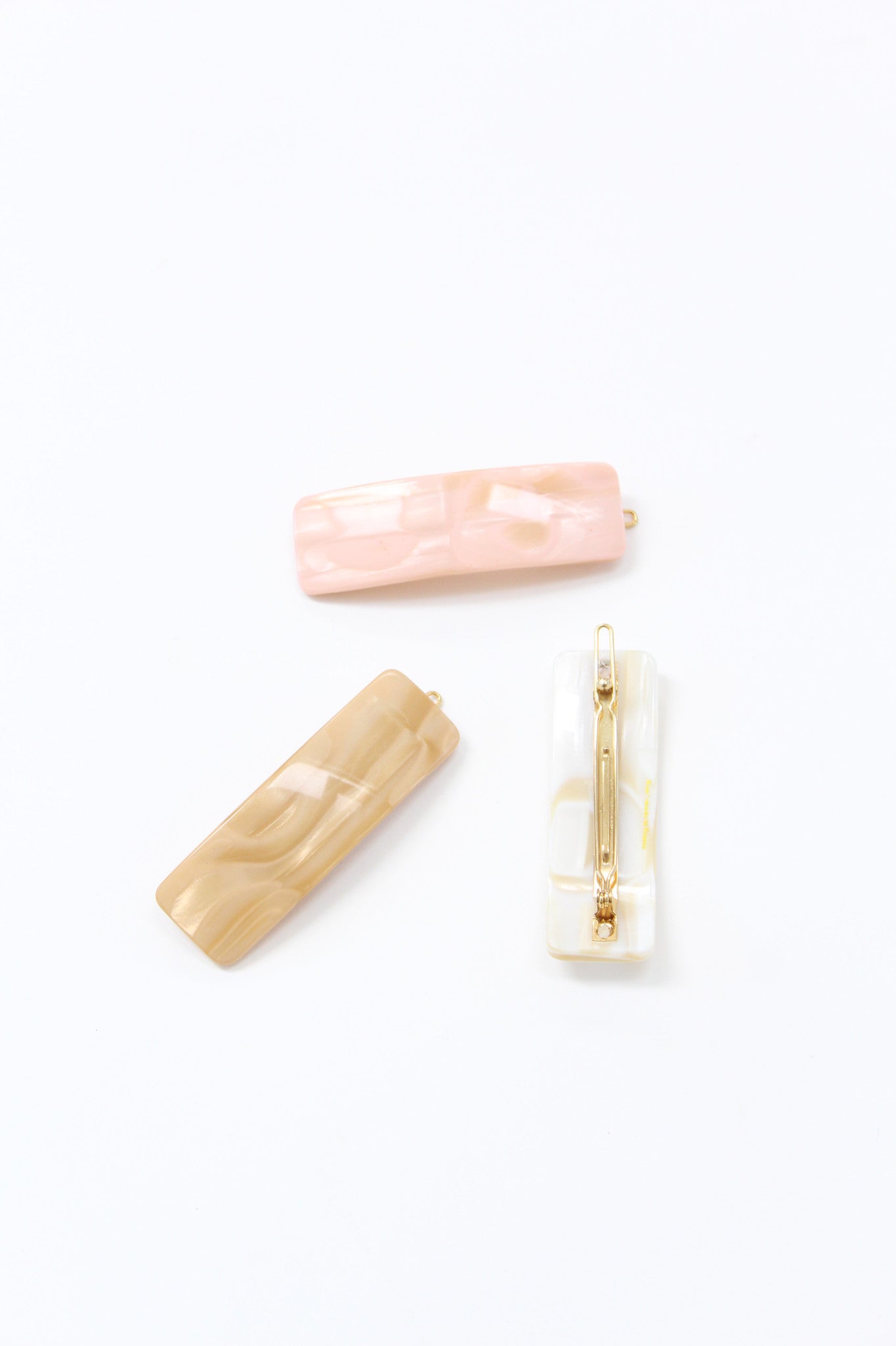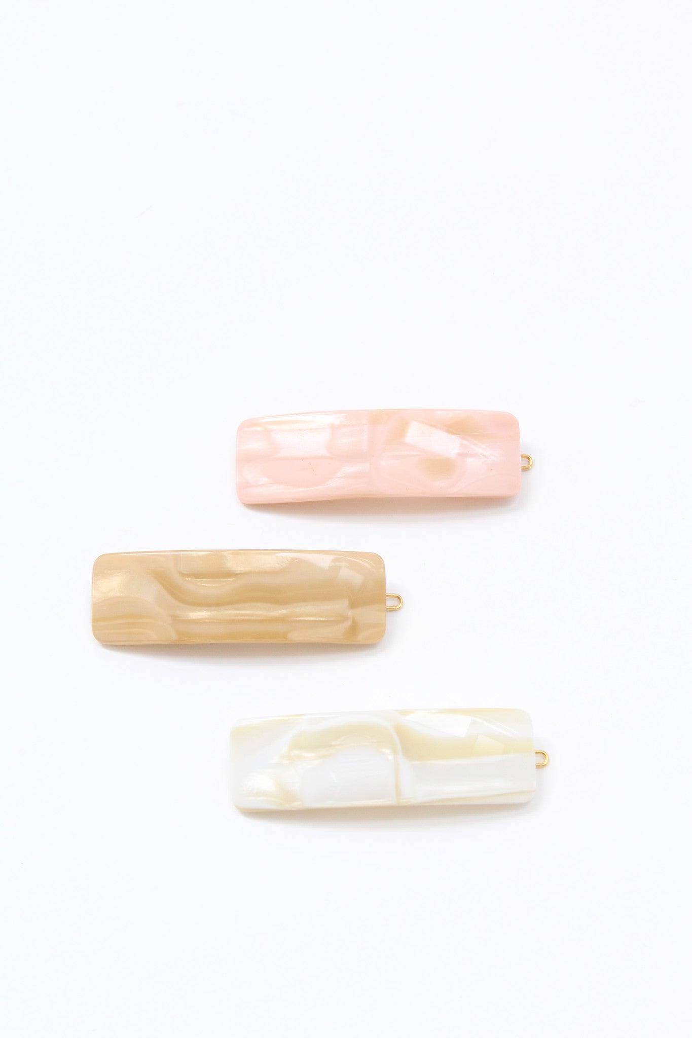 Made by hand in France, nougat barrette. Small tige boule clasp. Made of durable cellulose acetate. 3/4" wide, 2 1/2" long