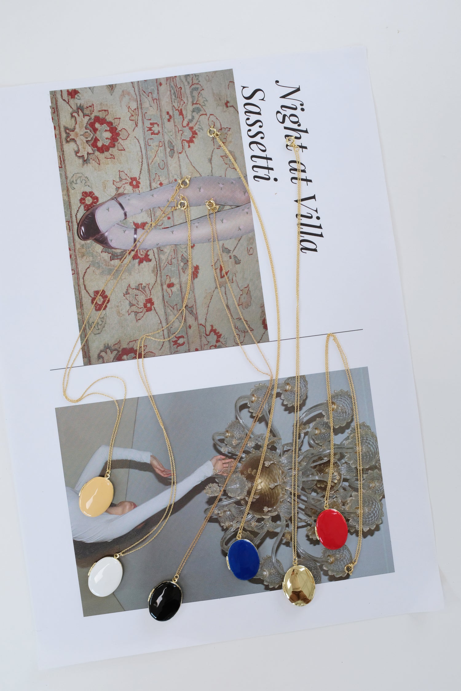 Made in Paris. Gold plated brass & enamel. Chain length aprox: 24" Holds images. Precious! A perfect gift. They also look great grouped together.
