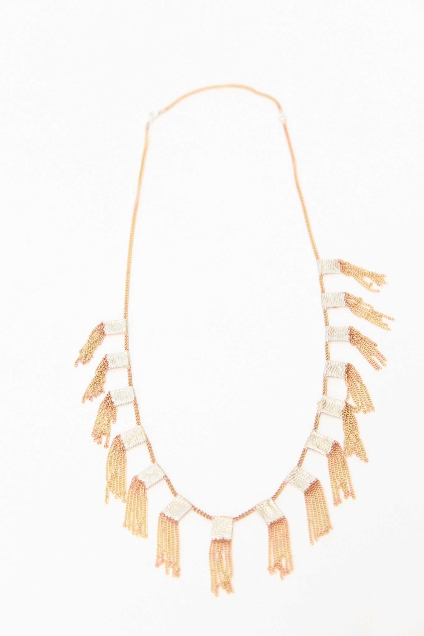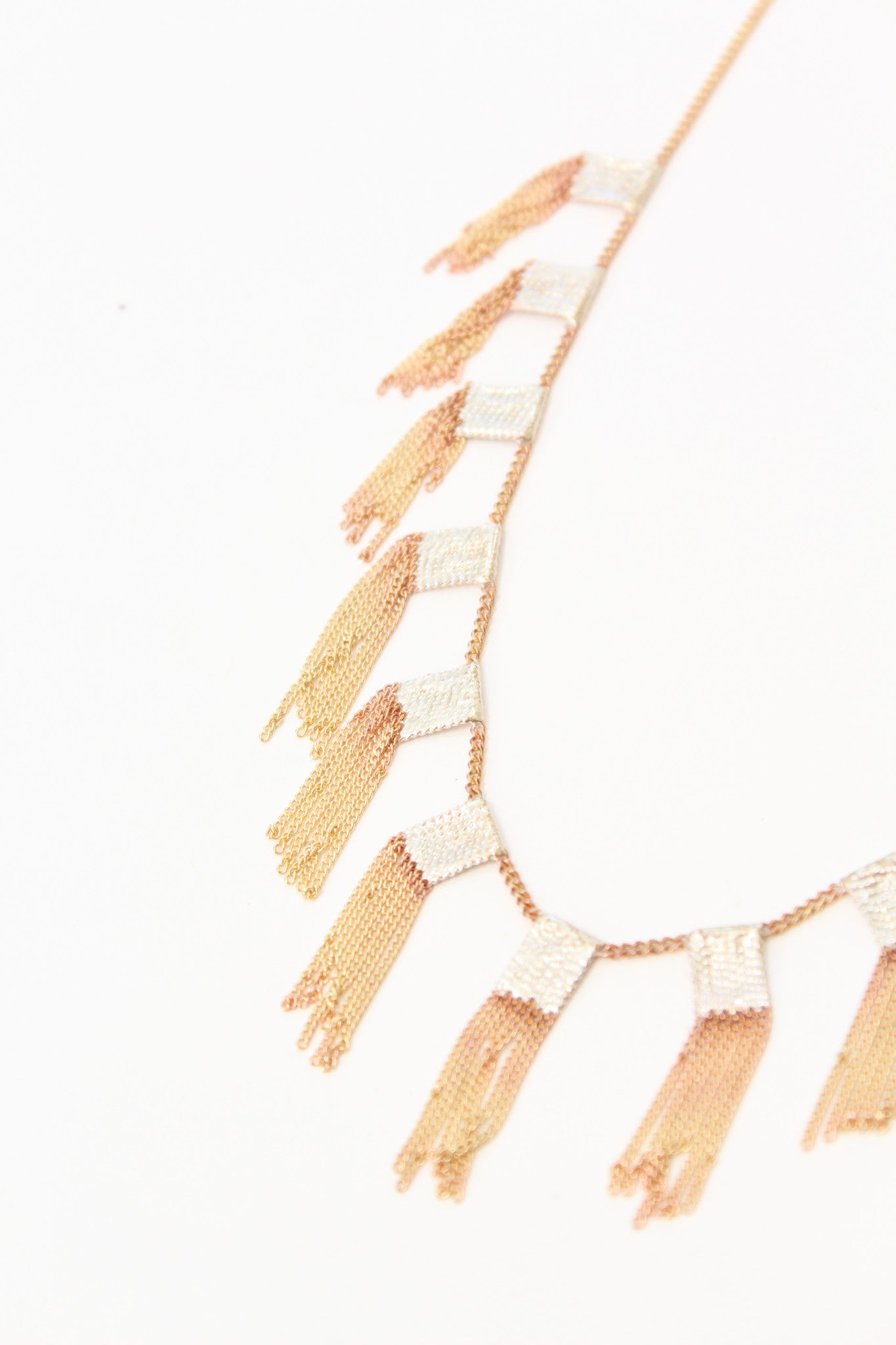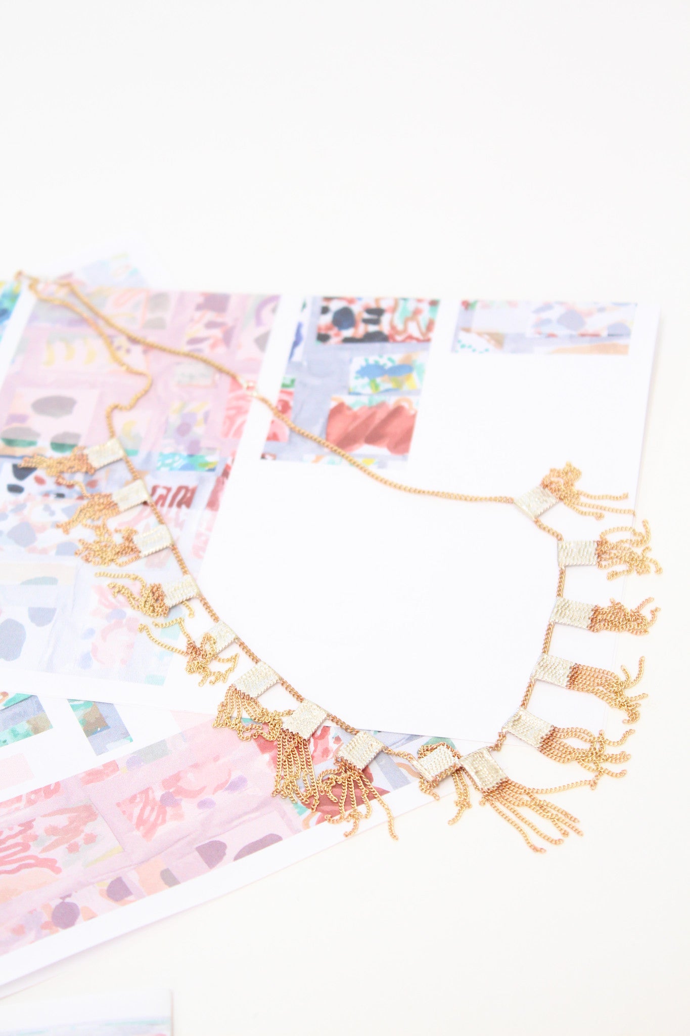 Sterling silver solder and brass chain. Adjustable length, 11"