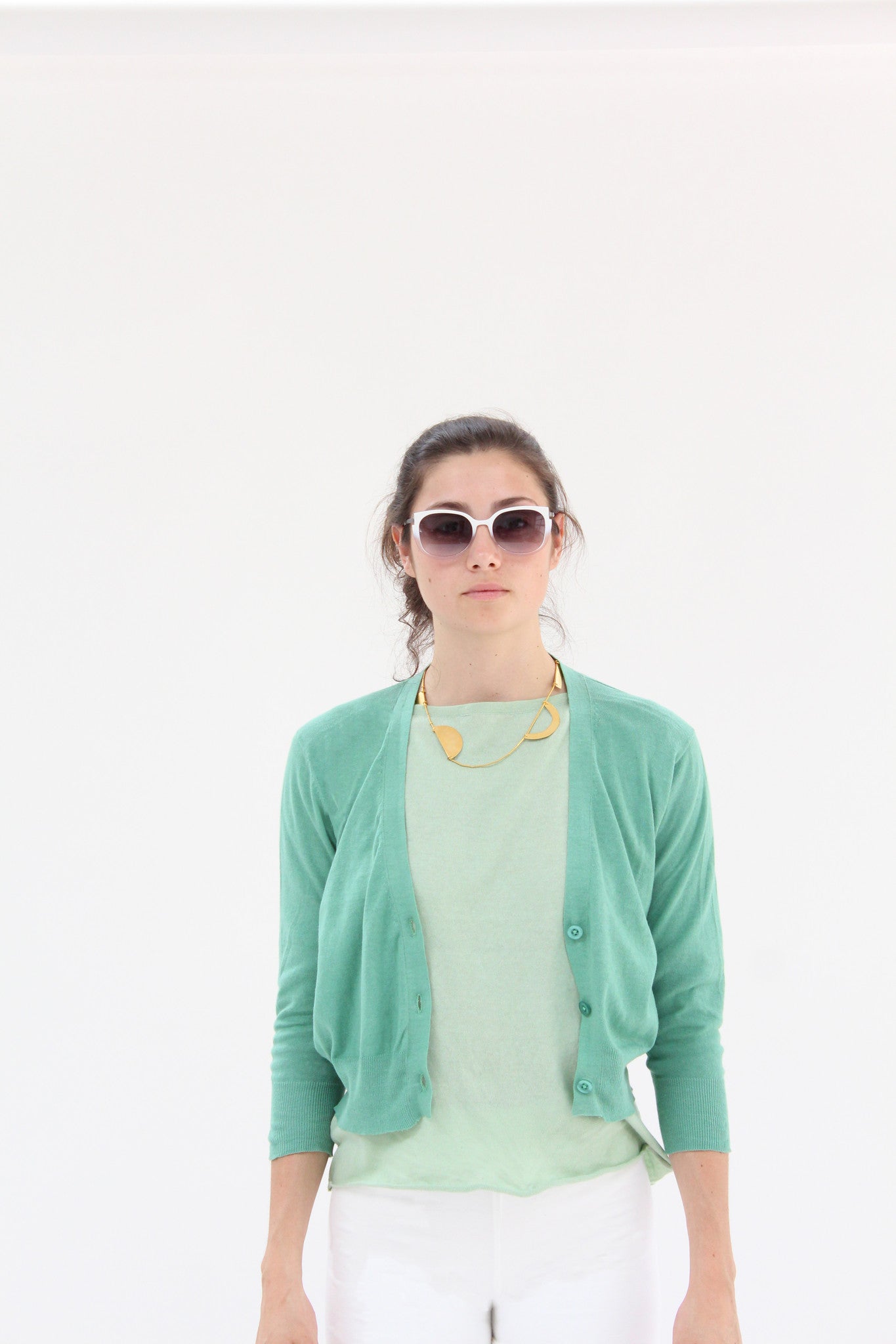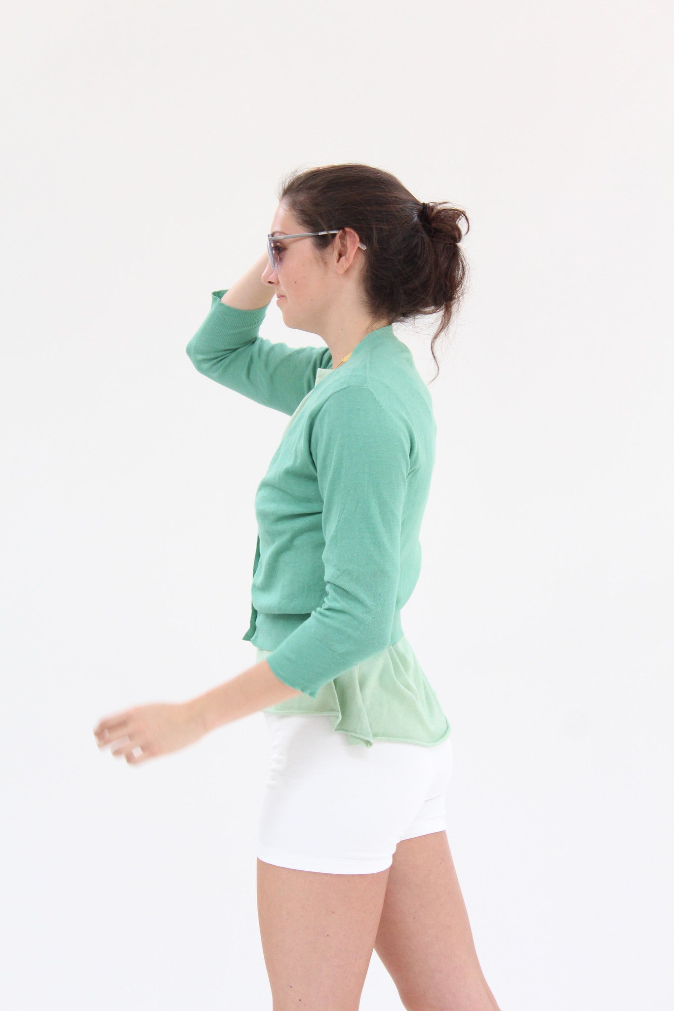 Lina Rennell 3/4 Cotton Knit Cardigan Jade