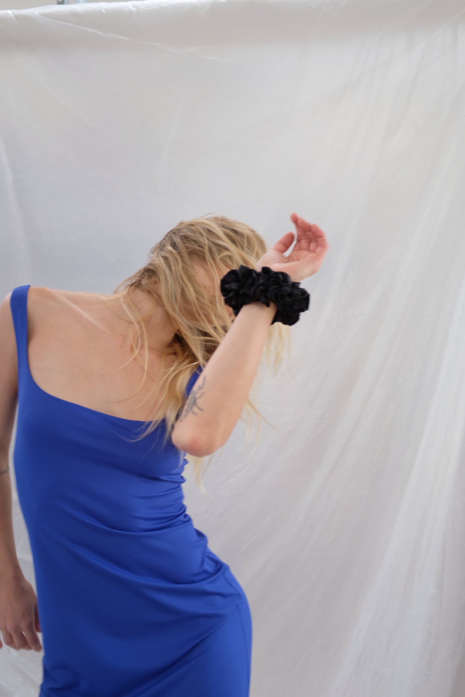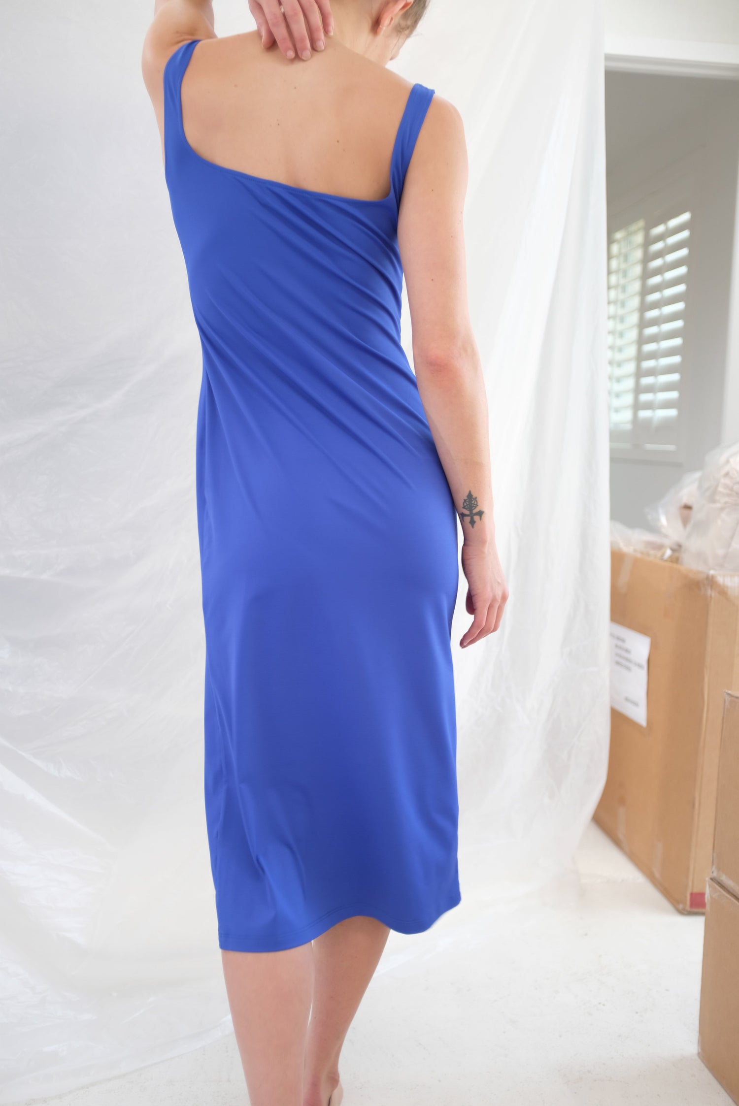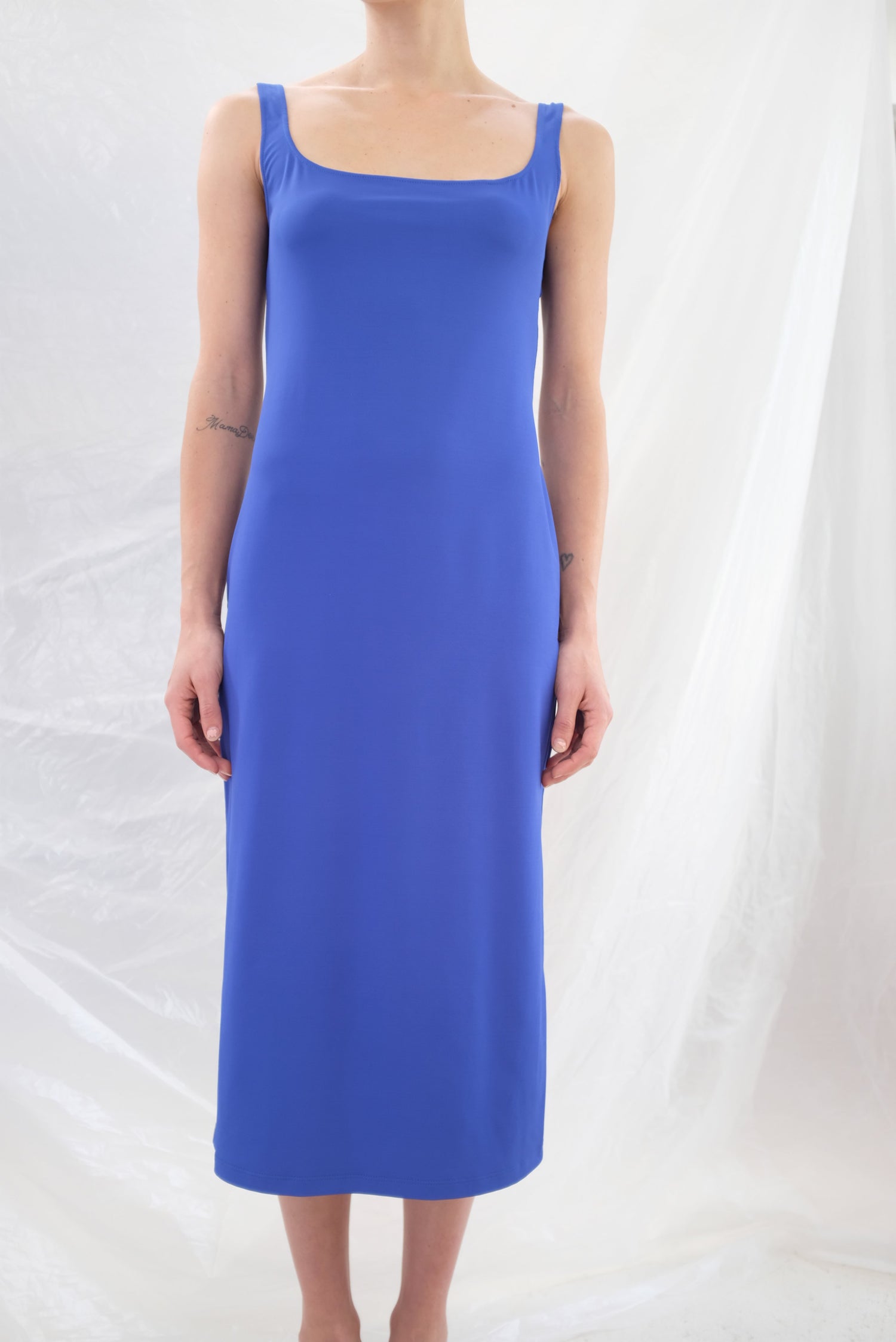 Best selling dress by MNZ. Fitted sleeveless dress with square neckline. Nice stretch. Model is wearing size 6. 92% polyester, 8% polyurethane.