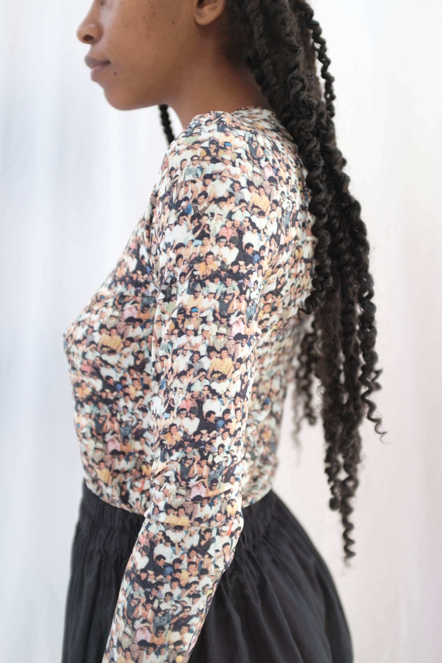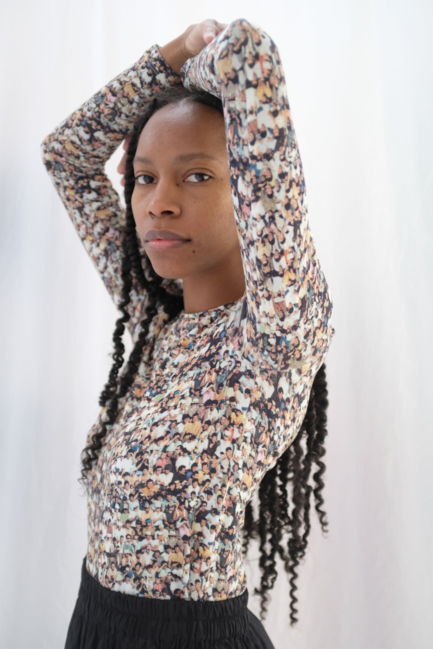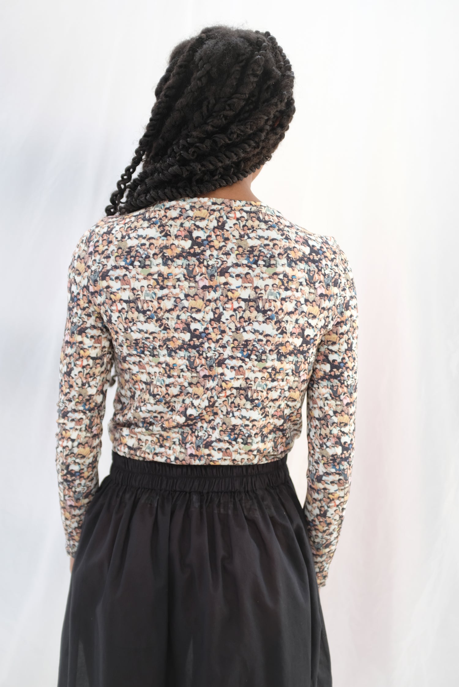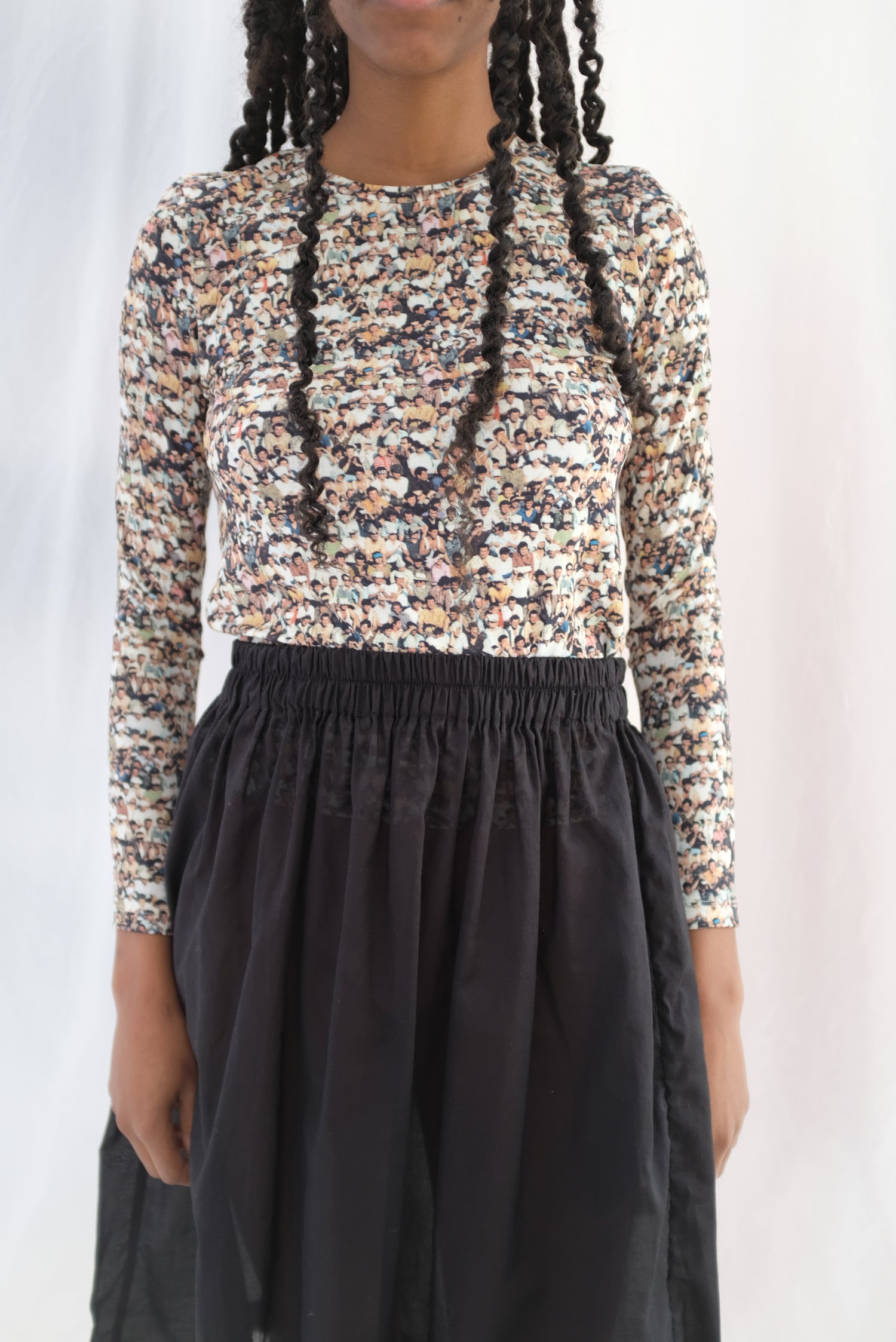 Super soft long sleeved T-shirt. Stretchy and light weight, with all over fun people print. Fits true to size. 96% Lyocell 4% Elastane.